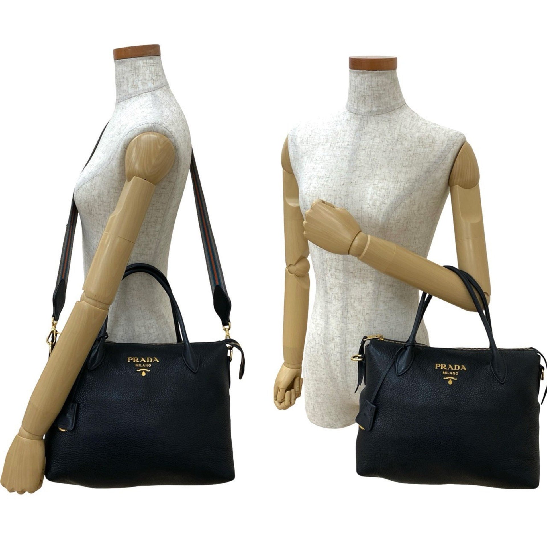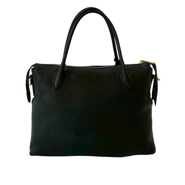 Prada Vitello Dino Leather 2-Way Handbag/Tote/Shoulder Bag in Black with Logo and Hardware, 40088