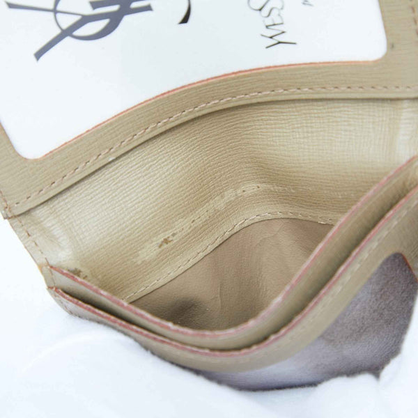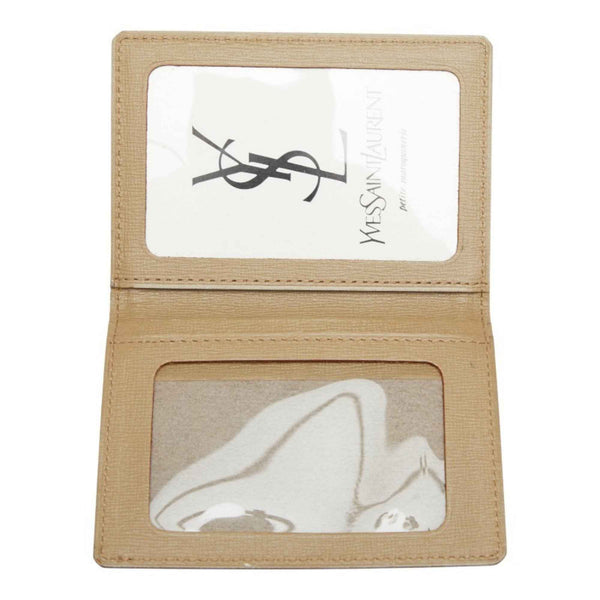 Saint Laurent YSL logo business card holder/card case/pass case in beige leather and canvas for women. SAINT LAURENT