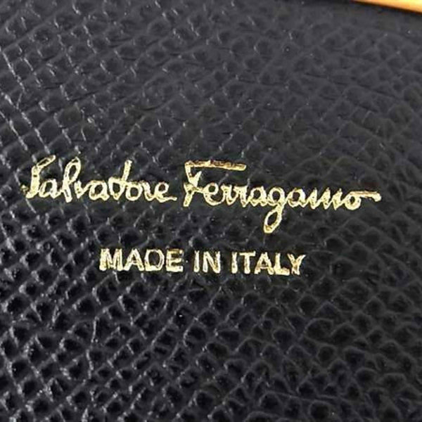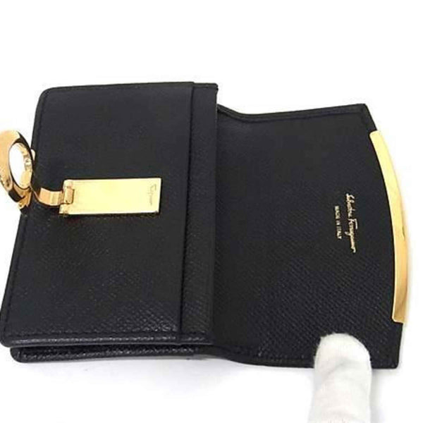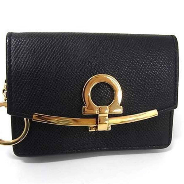 Salvatore Ferragamo Gancini Business Card Case, Size 22, D198, Black Leather, Women\'s