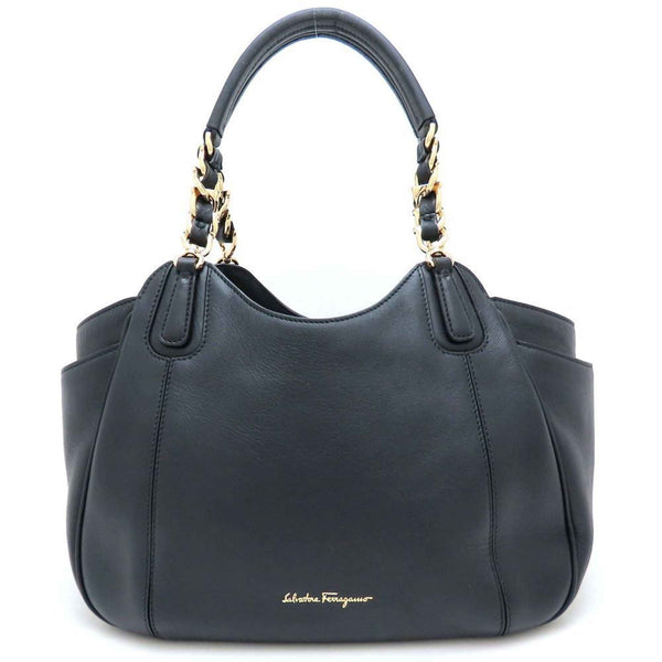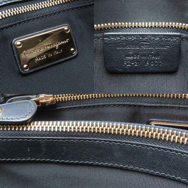 Salvatore Ferragamo Gancini FZ-21F077 Handbag in Black Leather, Women\'s, 352750