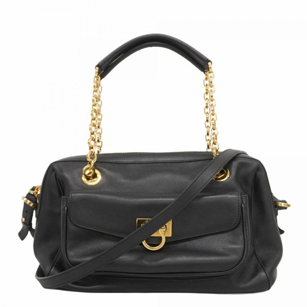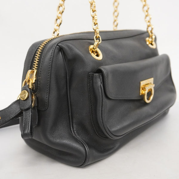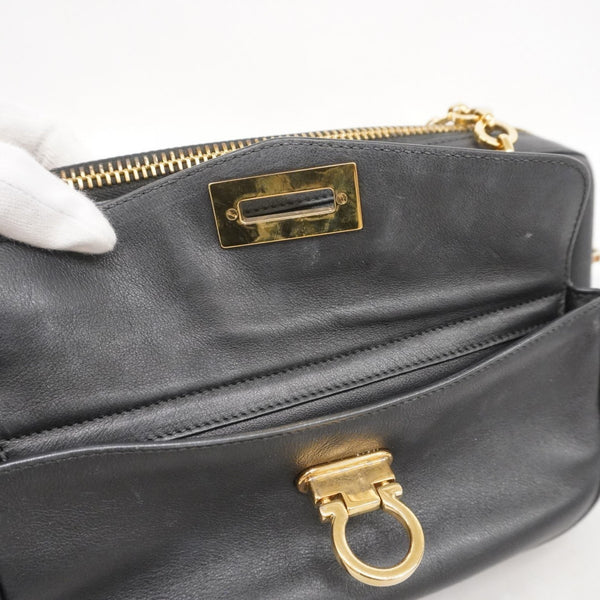 Salvatore Ferragamo Gancini Leather Shoulder Bag, Black, Women's, P1059319