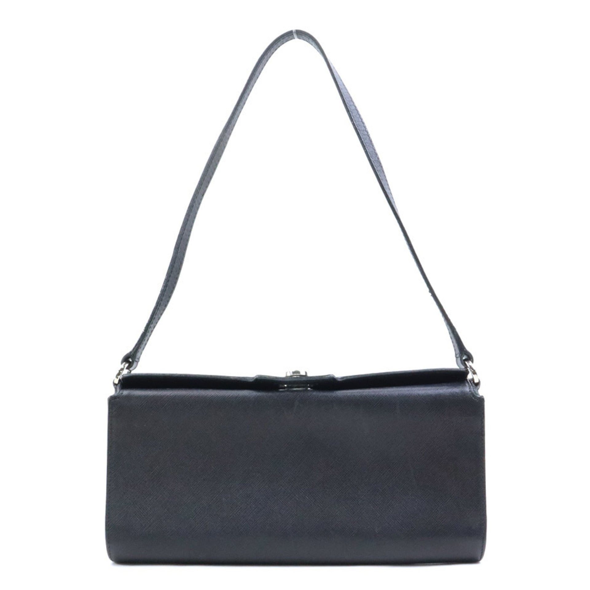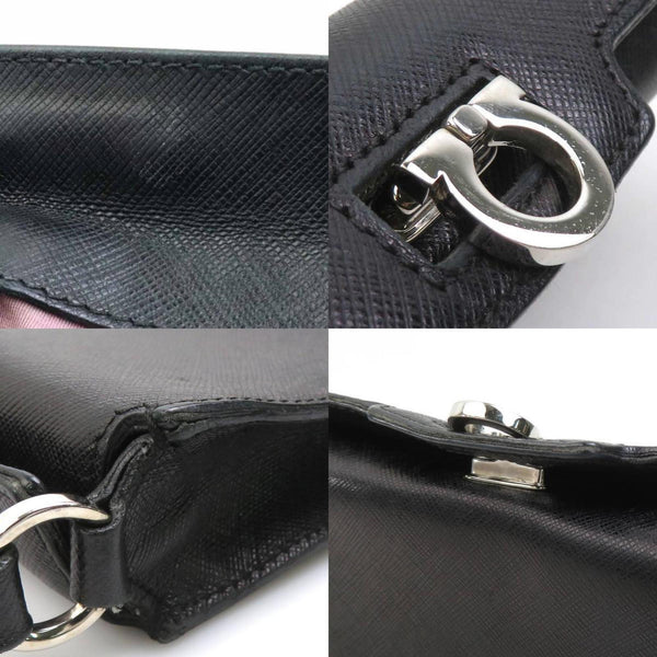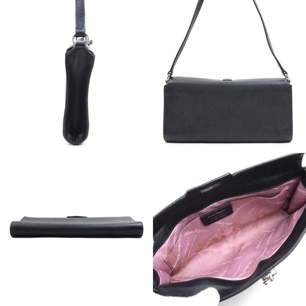 Salvatore Ferragamo Gancini Leather Shoulder Bag in Black and Silver, Women\'s, e60713a