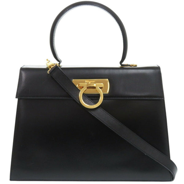 Salvatore Ferragamo Gancini O21 2181 Calf Leather Black Handbag 0662Salvatore