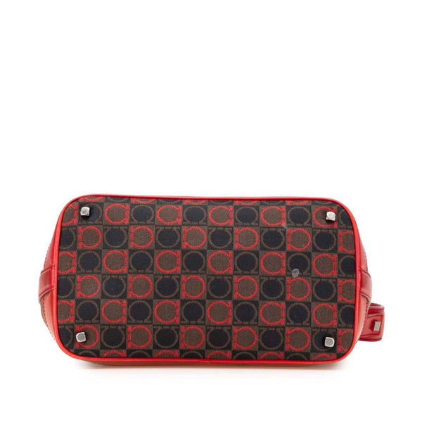 Salvatore Ferragamo Gancini One-Shoulder Bag in Black and Red Canvas Leather for Women