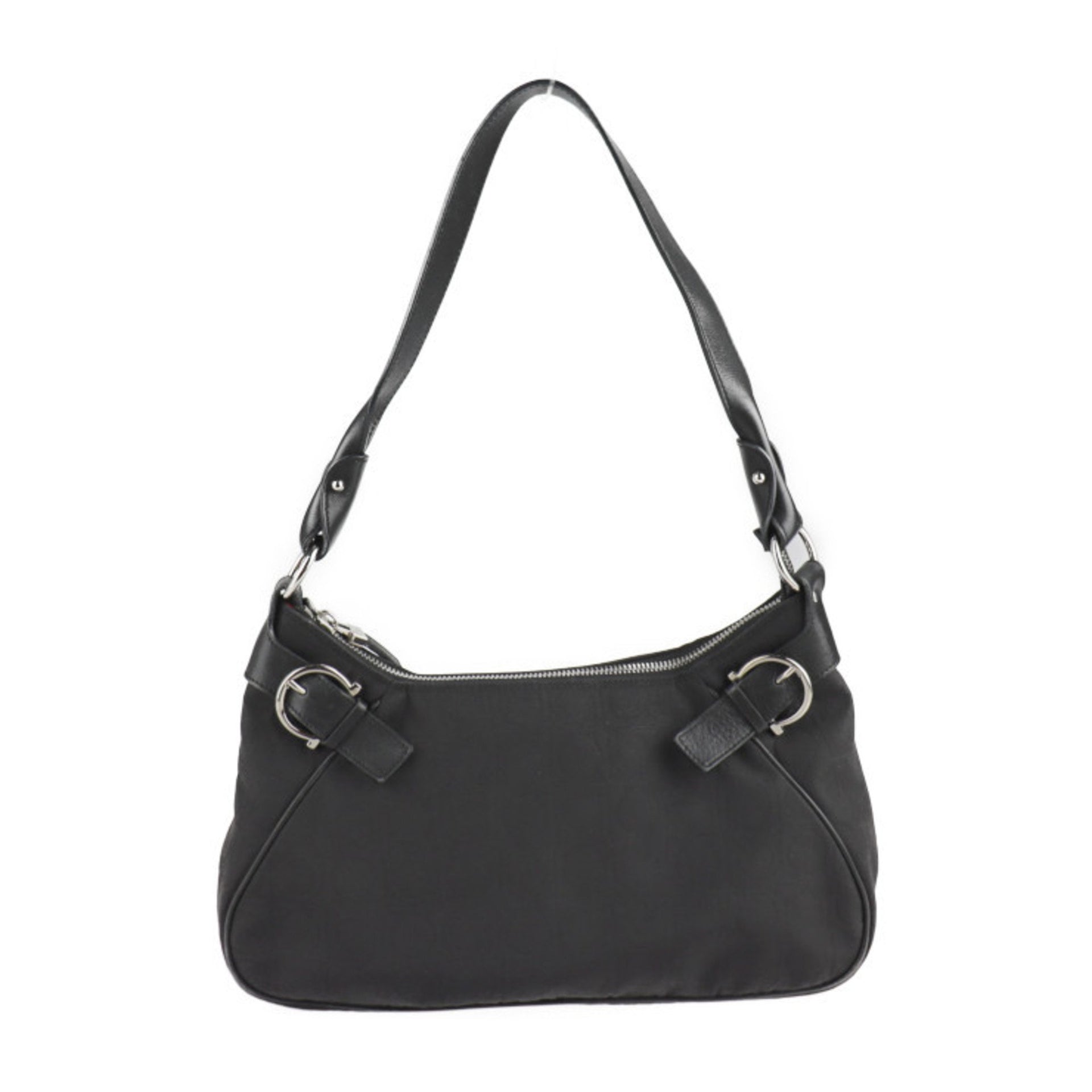 Salvatore Ferragamo Gancini Shoulder Bag 21 4436 Nylon Canvas Leather Black R2120123008228