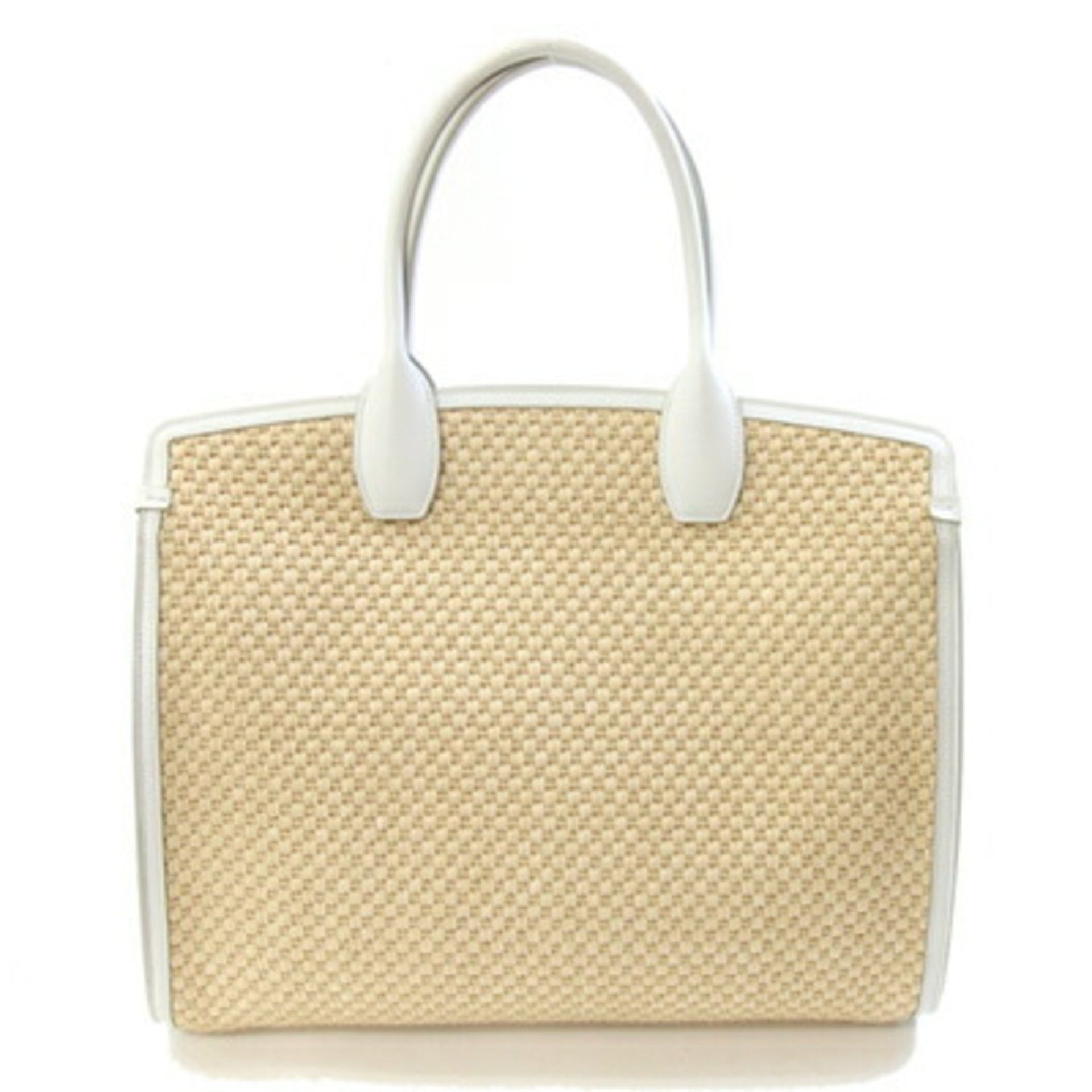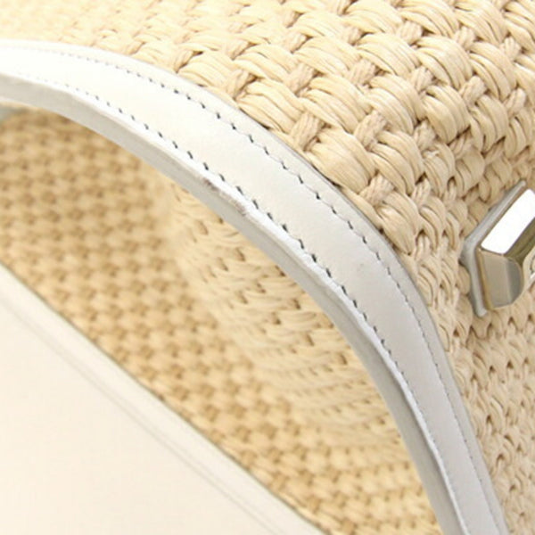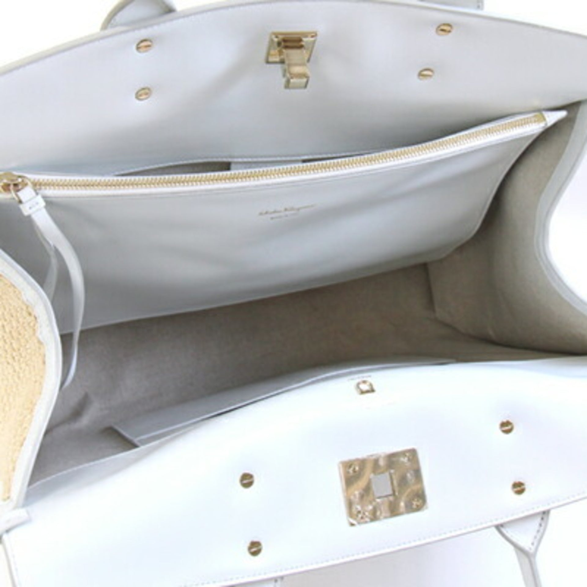 Salvatore Ferragamo Handbag Gancini Studio Bag DH21 2287 Natural White Straw Leather STUDIO Large Hand Tote Women\'s Basket