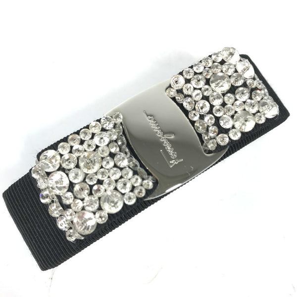 Salvatore Ferragamo logo Vara ribbon and rhinestone hair accessory, nylon barrette, black, like new, for women.