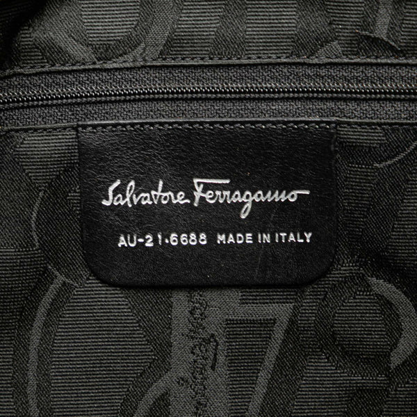 Salvatore Ferragamo Vara Chain Handbag Tote Bag AU-21 6688 Black Canvas Leather Women\'s
