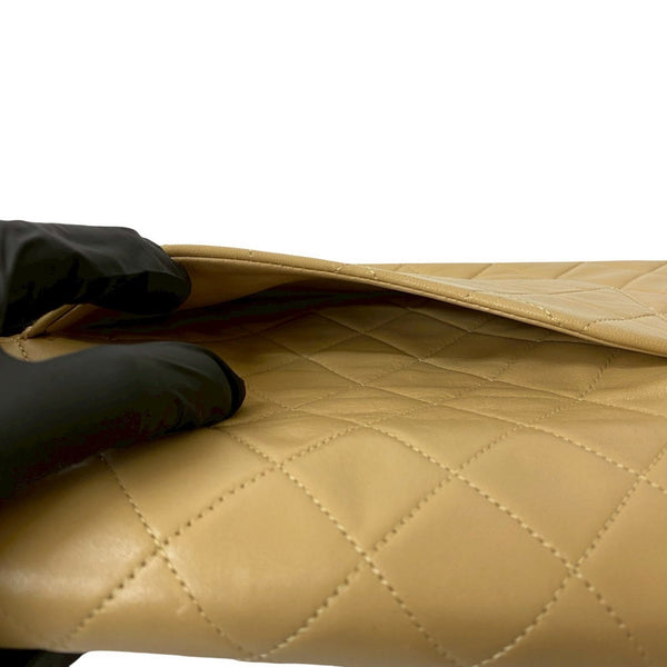 Seal No. 1 CHANEL Matelasse Coco Mark Lambskin Chain Shoulder Bag Pochette Beige c77-8