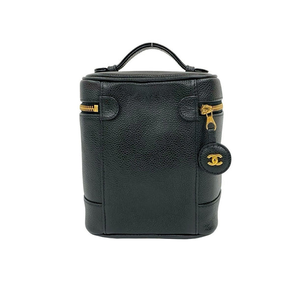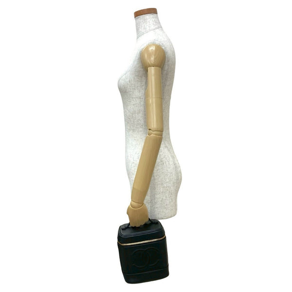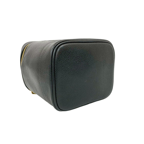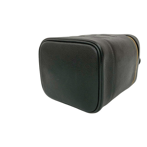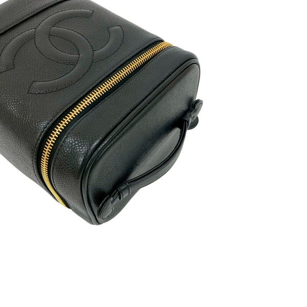 Seal No. 8 CHANEL Vintage Coco Mark Caviar Skin Handbag Vanity Bag Black 27068
