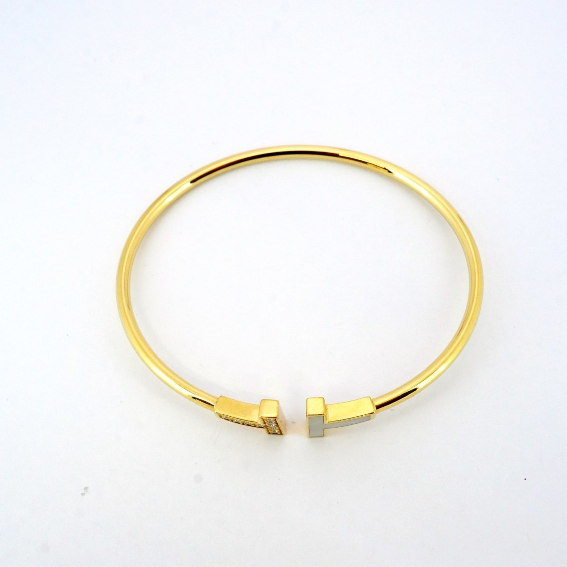 Tiffany Bangle T-Wire 9PD 18KYG Yellow Gold Diamond Mother of Pearl 0.11ct Women\'s