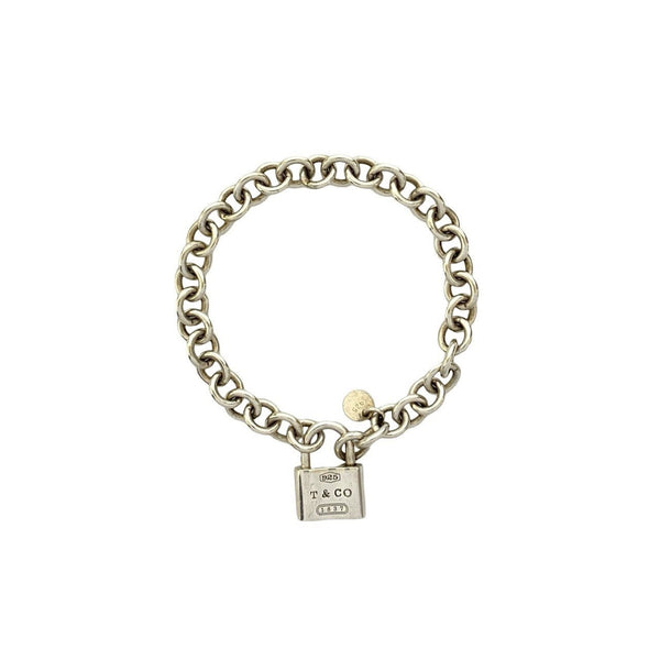 TIFFANY & Co. 1837 Cadena Lock Bracelet, 925 Sterling Silver, Chain Bangle, 10012
