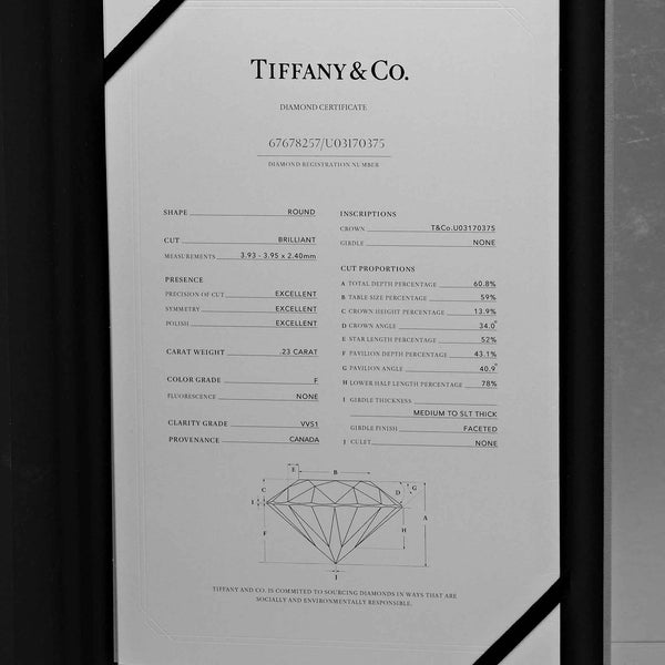Tiffany & Co. Harmony Solitaire Ring, size 14, 0.23ct VVS1/F/3EX, Pt950 platinum with diamonds, approximately 2.45g.