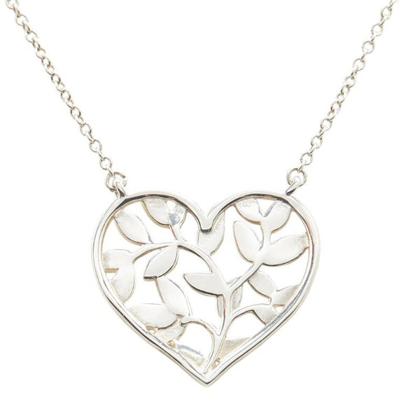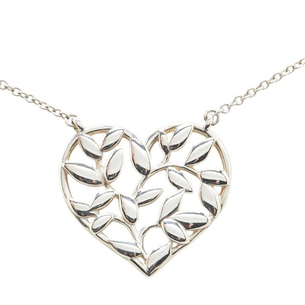 Tiffany & Co. Olive Leaf Heart Motif Necklace in 925 Sterling Silver for Women.
