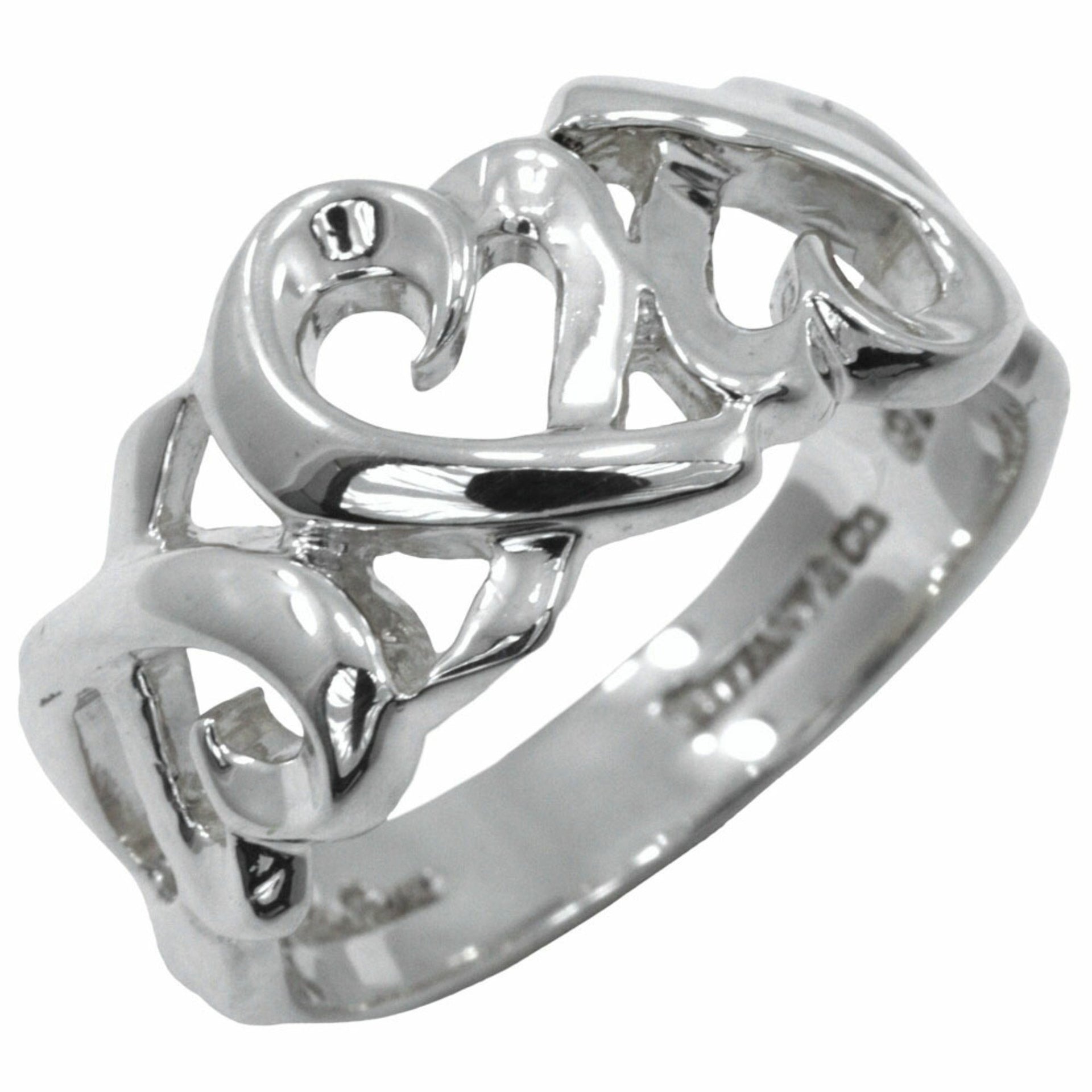Tiffany & Co. Triple Loving Heart Ring, size 11.5, Paloma Picasso, 925 Sterling Silver, approximately 4.1g, for women.
