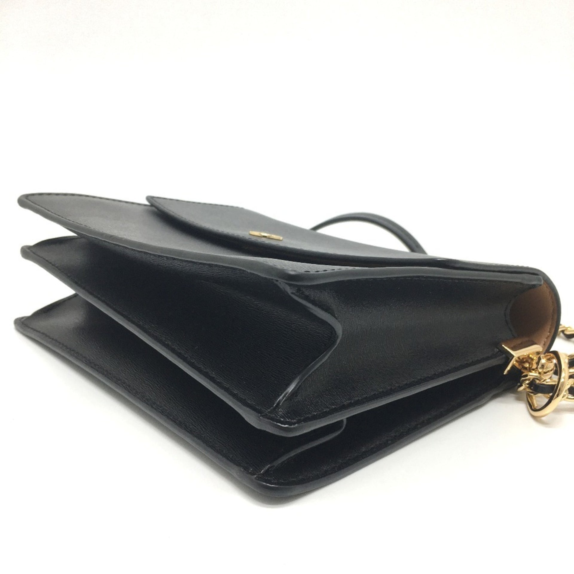 Tory Burch Logo Chain Shoulder Bag in Black Leather