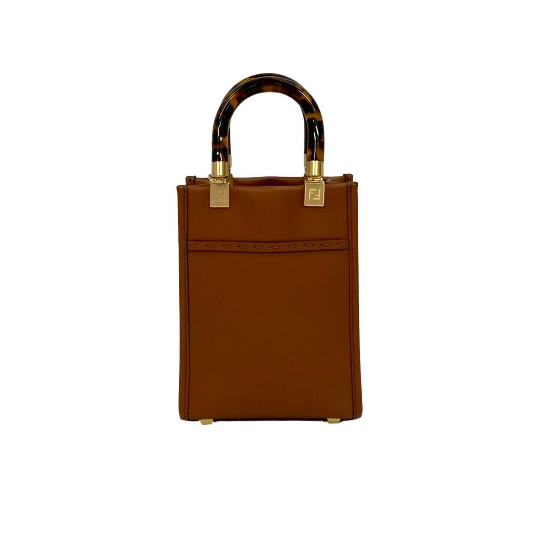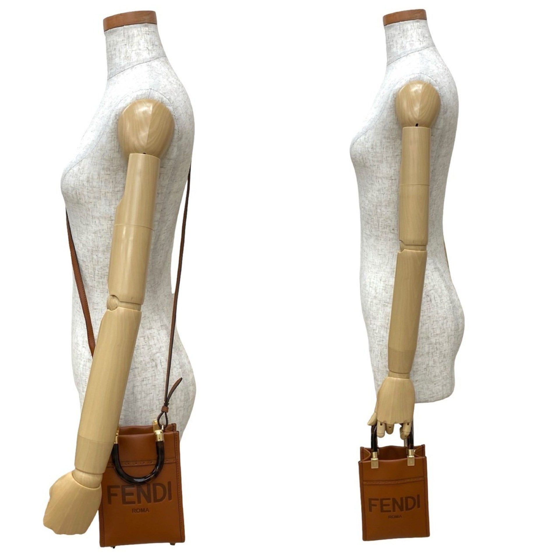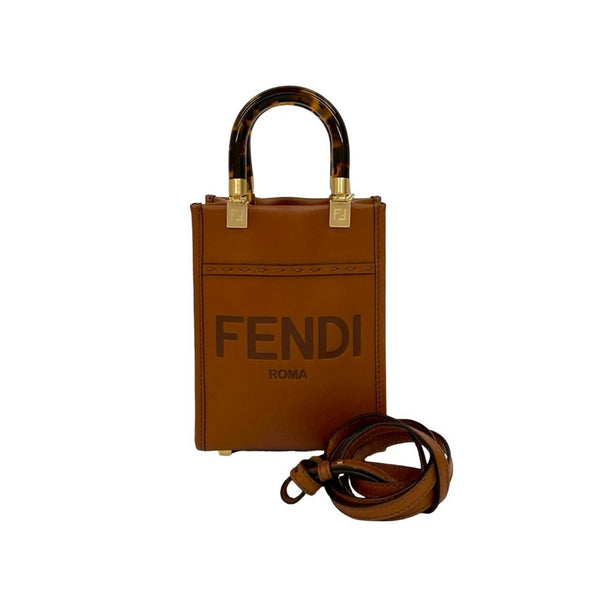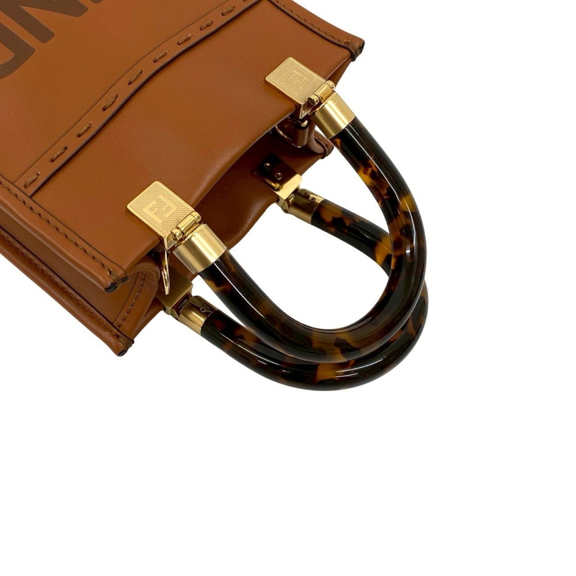 Unused FENDI Sunshine Shopper Mini Logo Leather 2-Way Handbag/Shoulder Bag Brown 64415