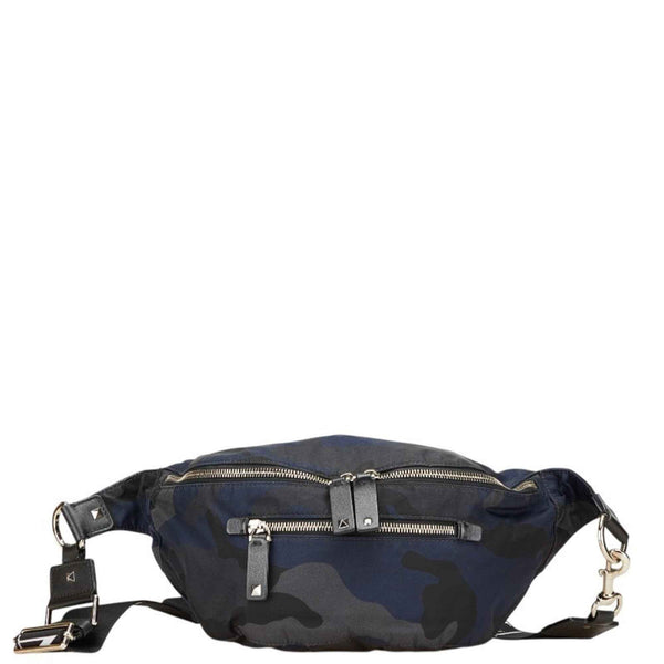 Valentino Rockstud Camouflage Waist Bag/Body Bag in Navy, Black, Gray, Nylon and Leather for Men