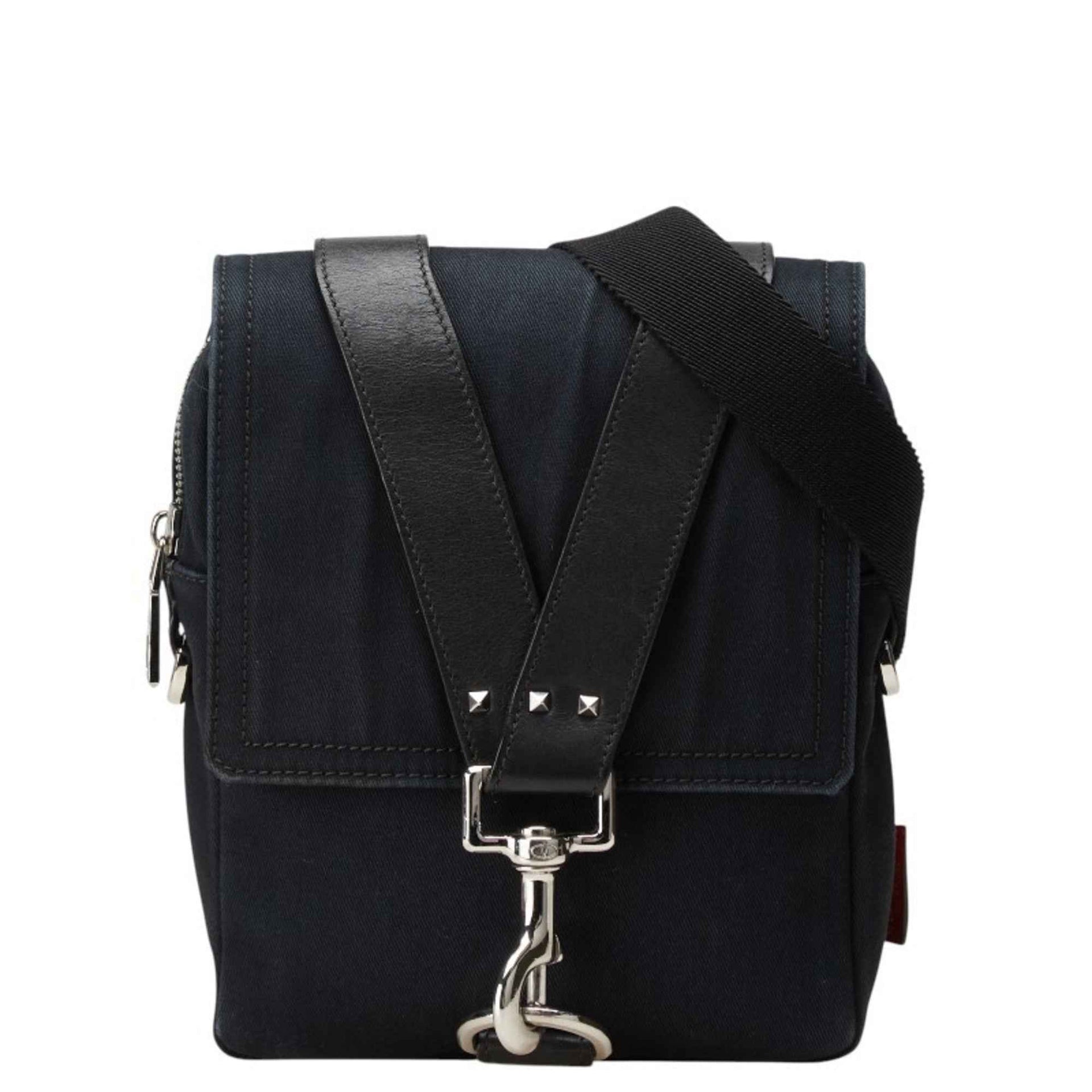 Valentino Studded Crossbody Shoulder Bag in Black Canvas and Leather for Women.