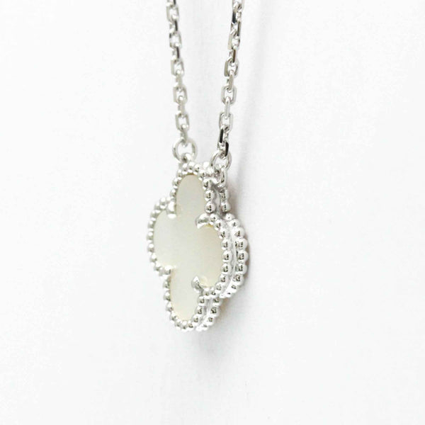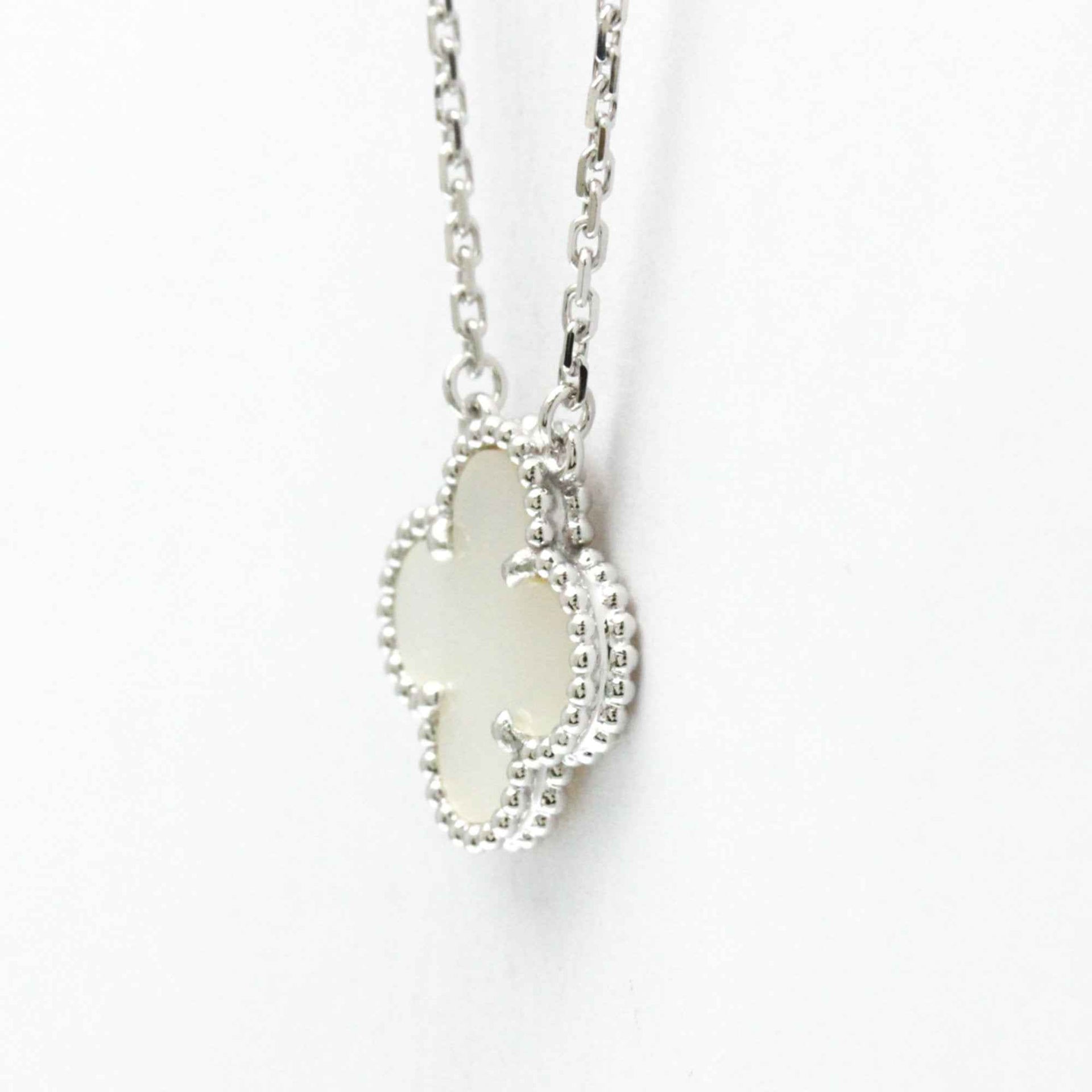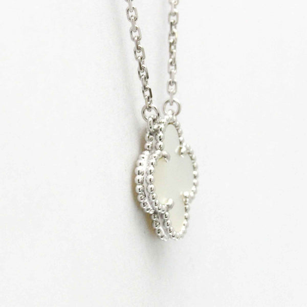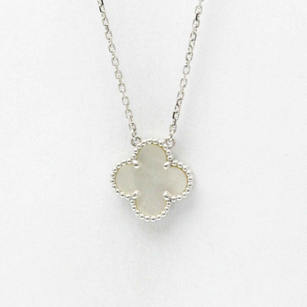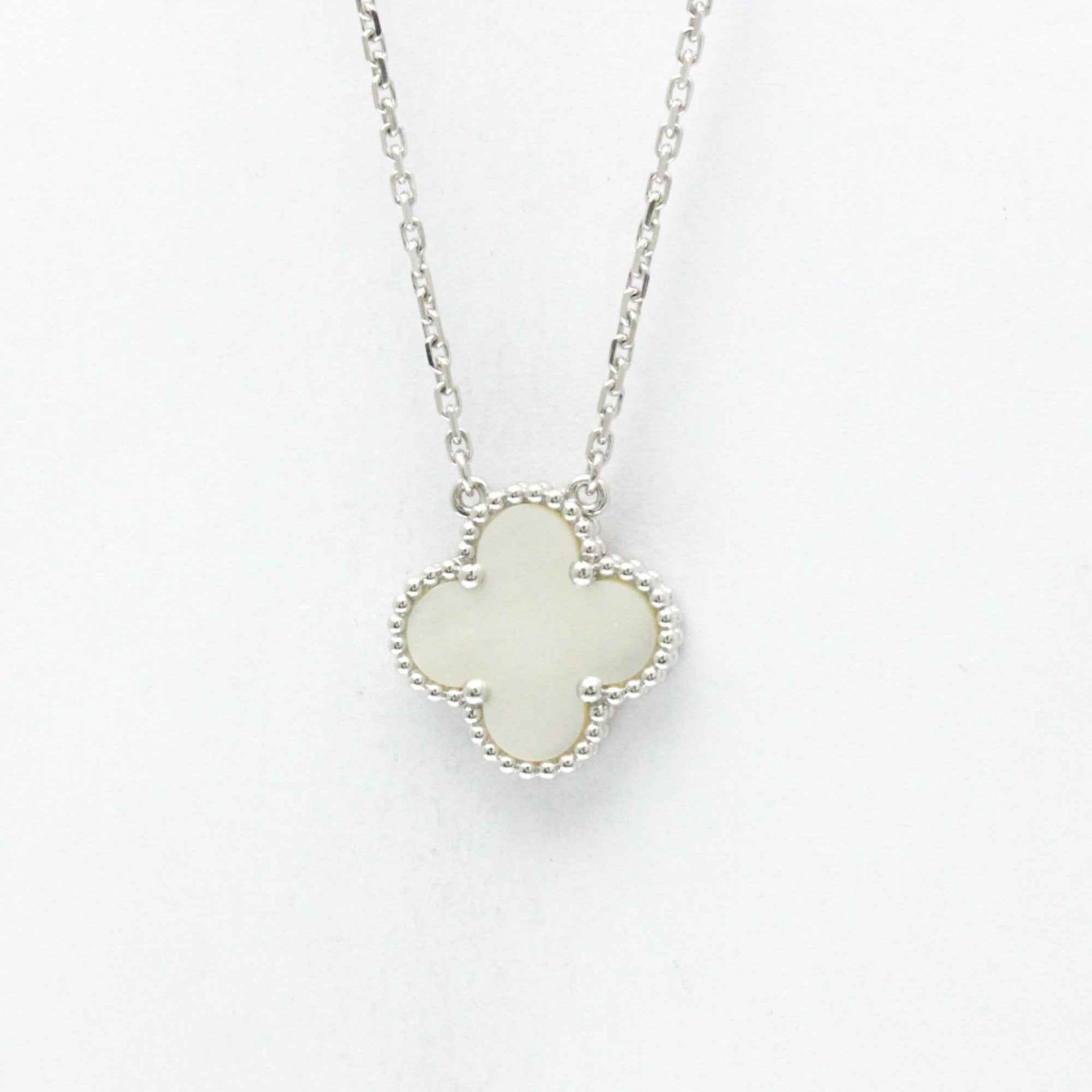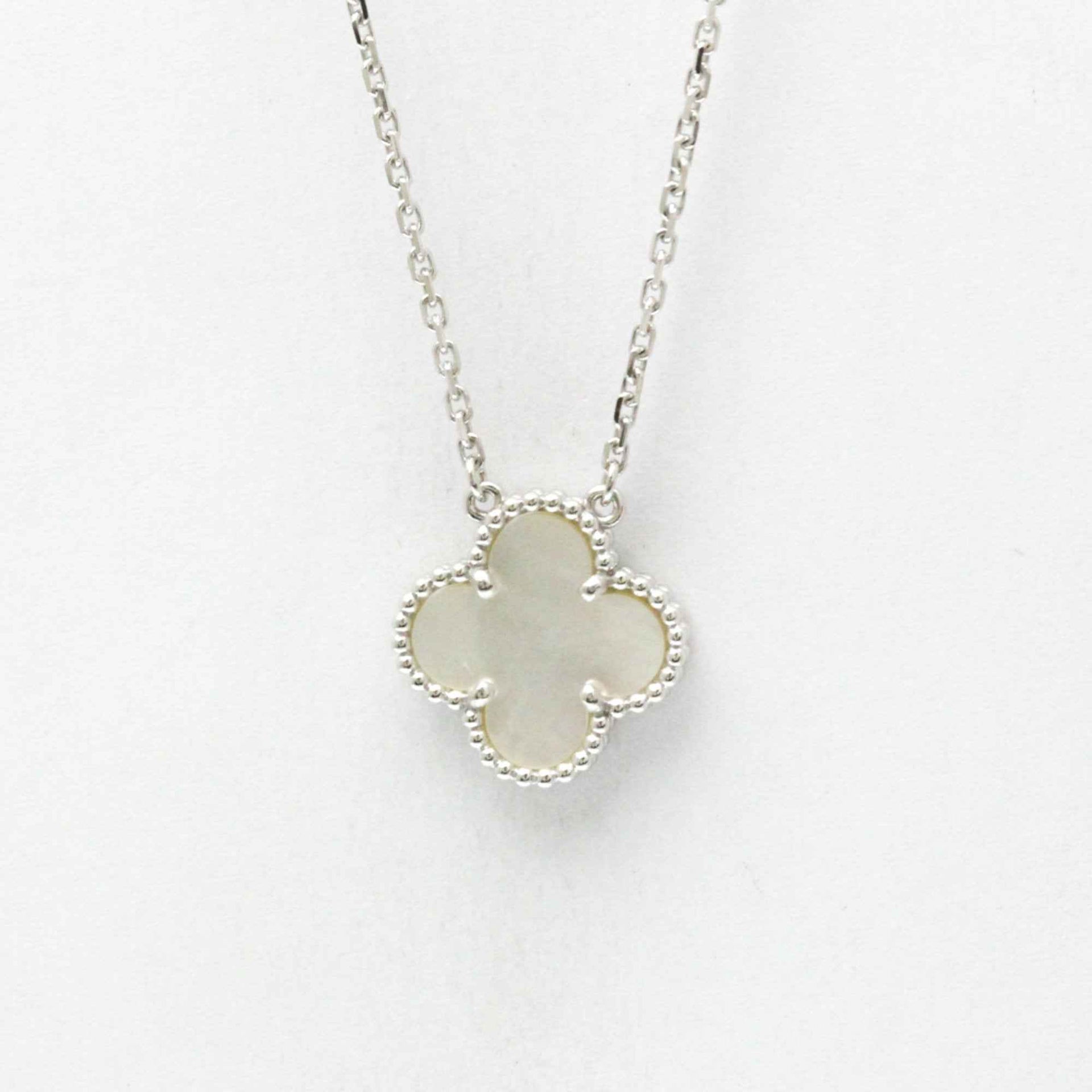 Van Cleef & Arpels Vintage Alhambra White Gold (18K) Mother Of Pearl Men,Women Fashion Pendant Necklace (Silver)