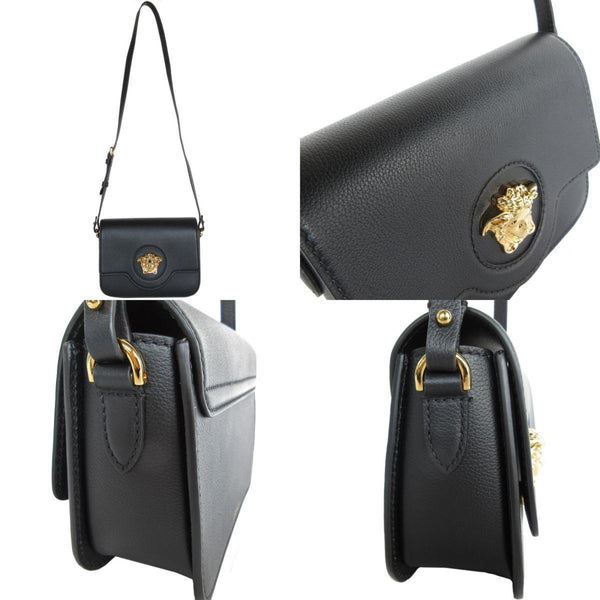 Versace Medusa Shoulder Bag Leather Black Gold Women\'s s0581