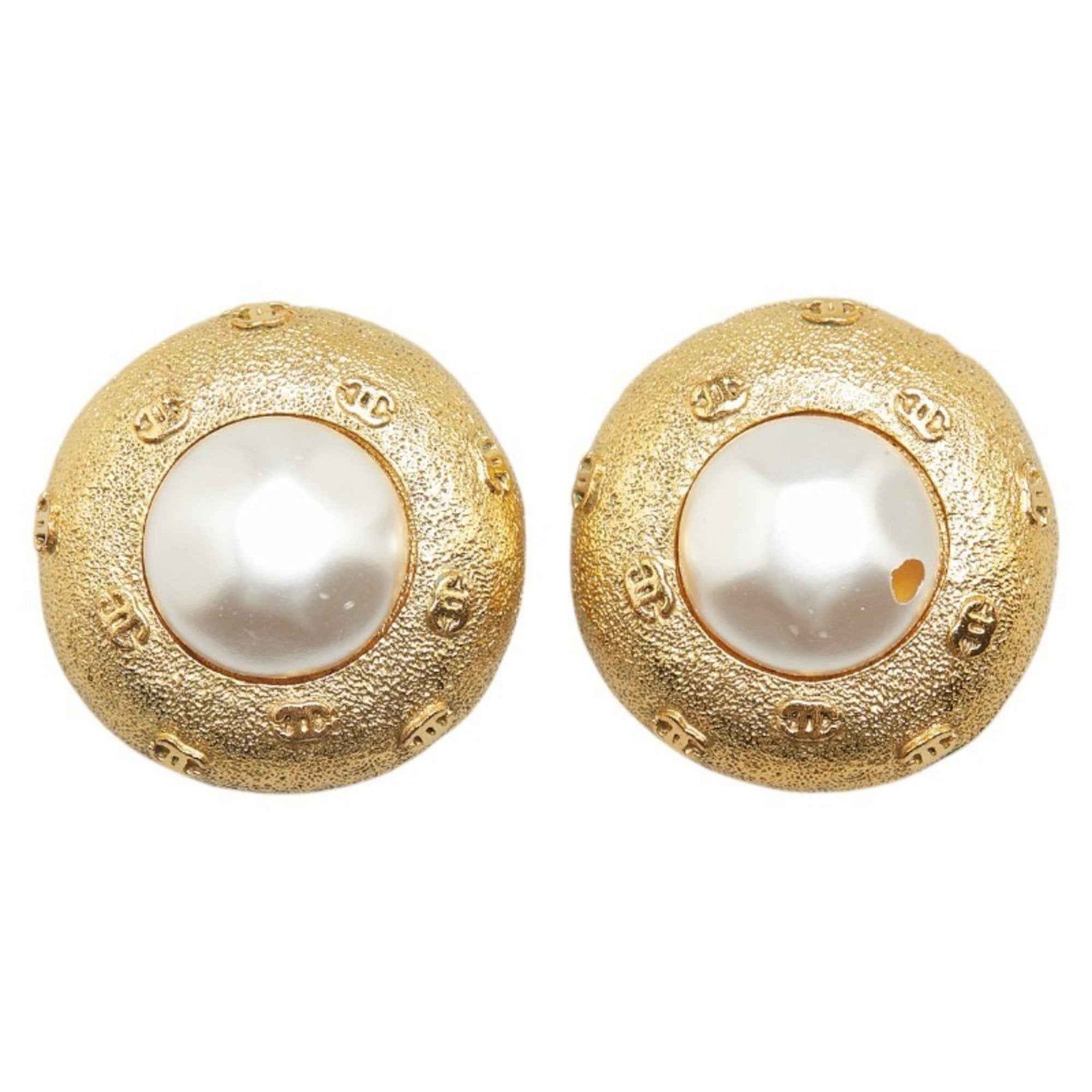 Vintage Chanel Coco Mark Earrings, Gold Plated with Faux Pearls, Women\'s, CHANEL