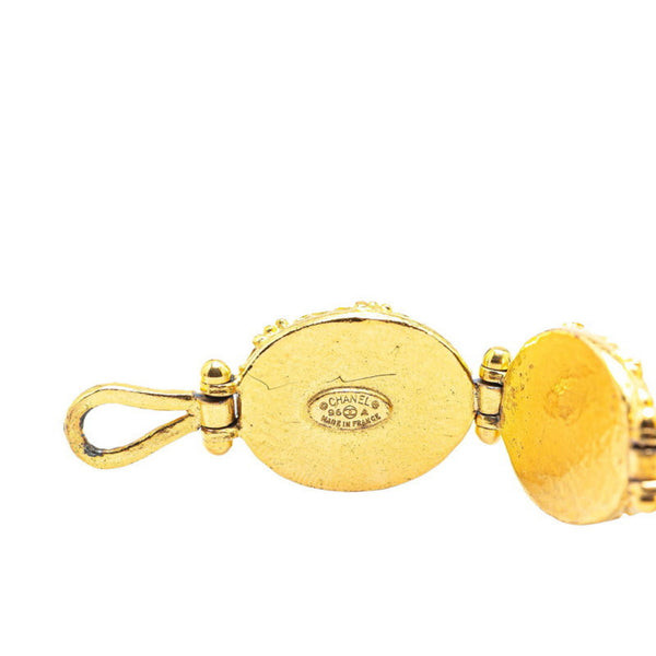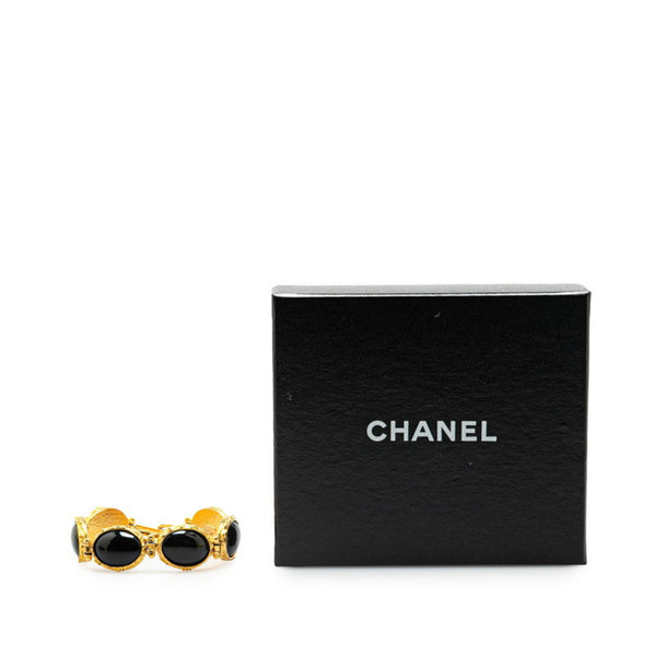 Vintage Chanel Coco Mark Stone Bracelet, Gold and Black Plated, Women\'s
