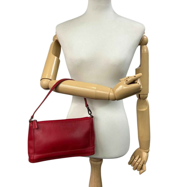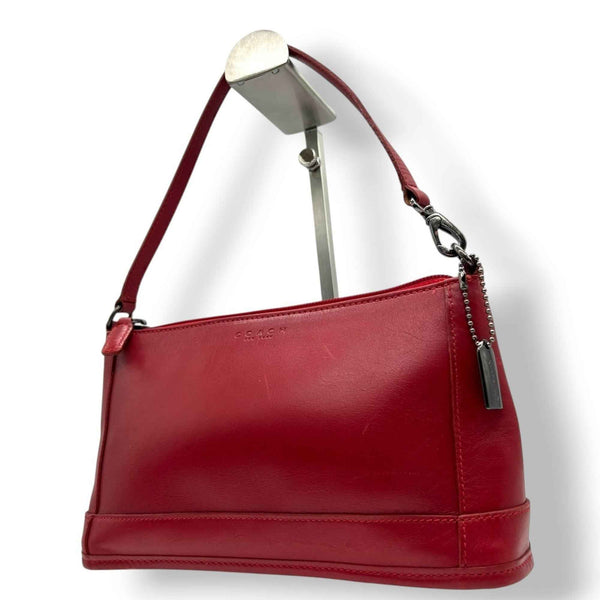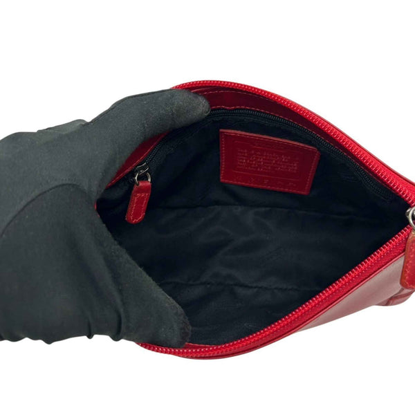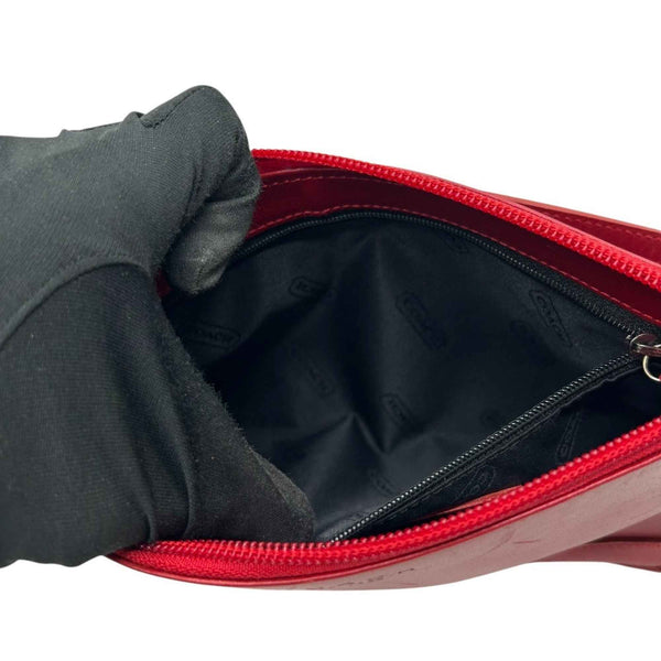 Vintage Coach handbag, mini bag, and accessory pouch, model 6151, in red leather. Made Italy. Women\'s. Item number 50.