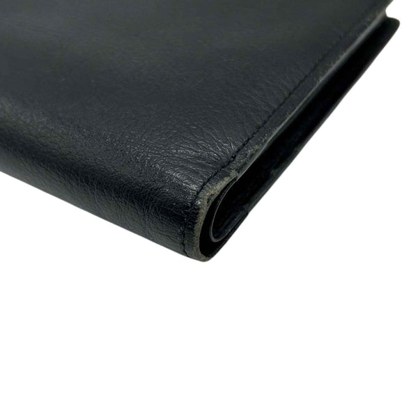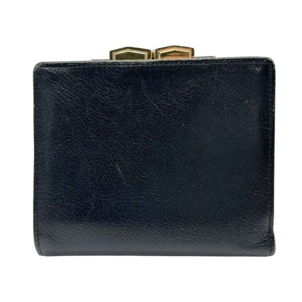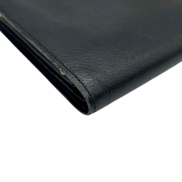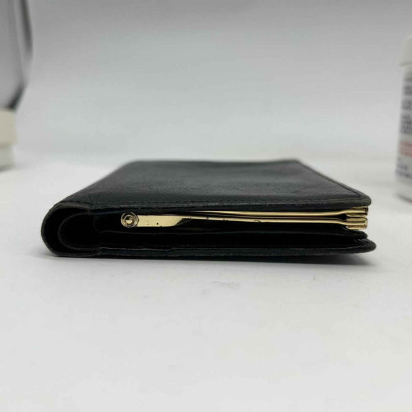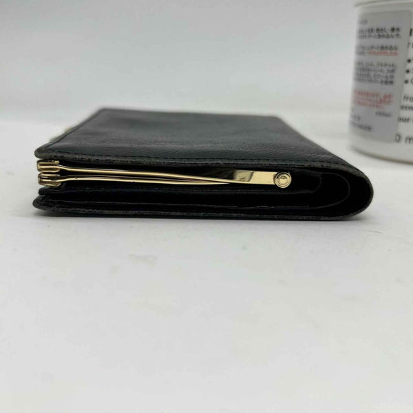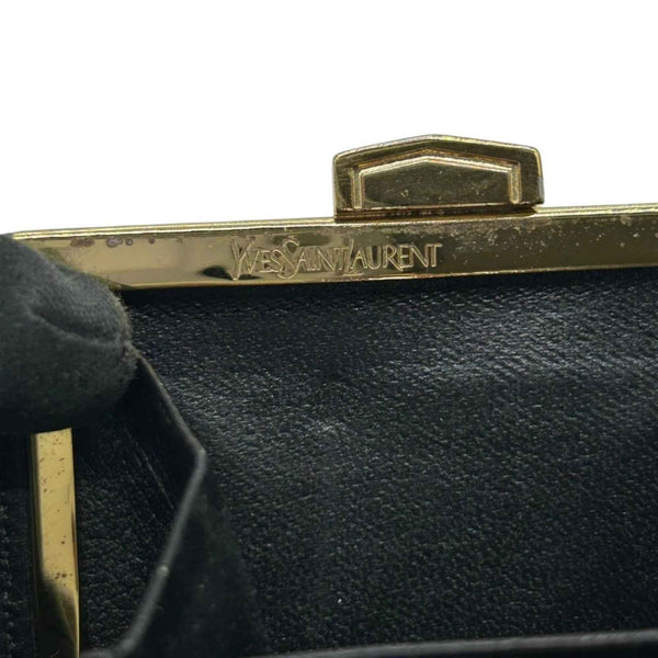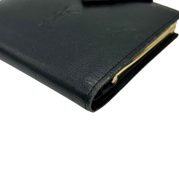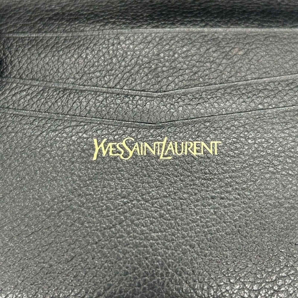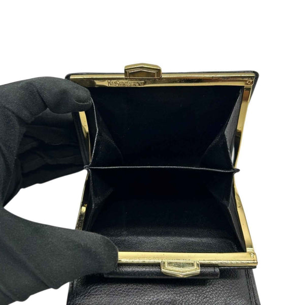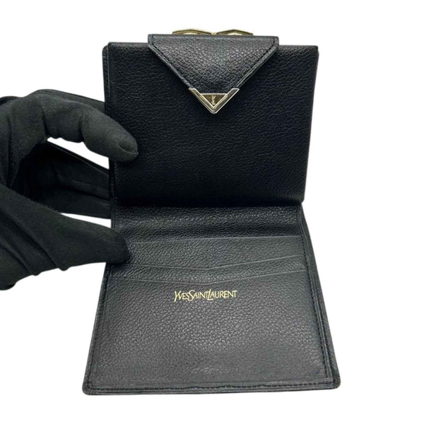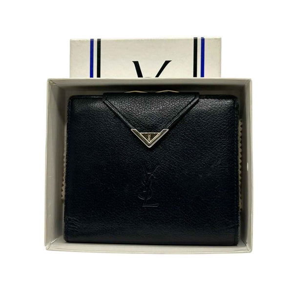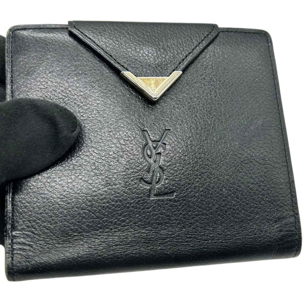 Yves Saint Laurent bifold wallet with YSL logo and V-stitching, compact in black leather, vintage style, for men women. W5
