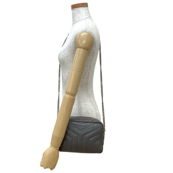 Yves Saint Laurent SAINT LAURENT PARIS Lulu YSL Logo Leather Chain Shoulder Bag Gray 91106