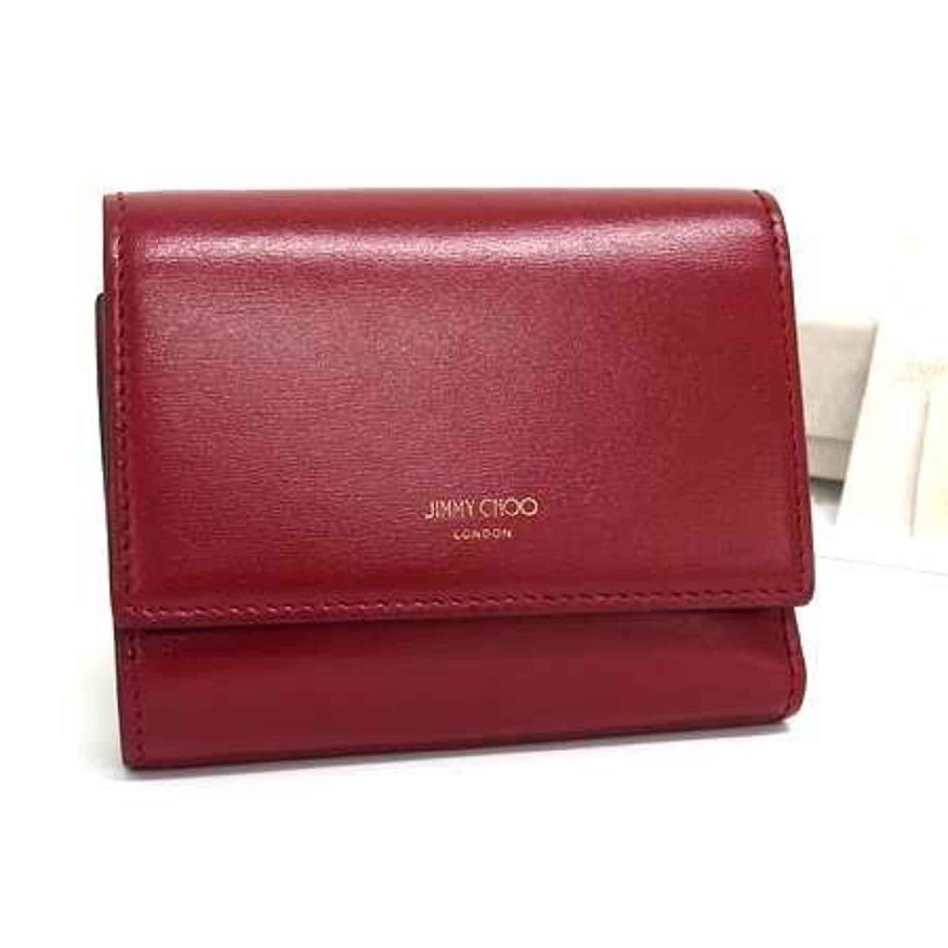 JIMMY CHOO Malinda Wallet - Red Leather Women\'s Tri-fold