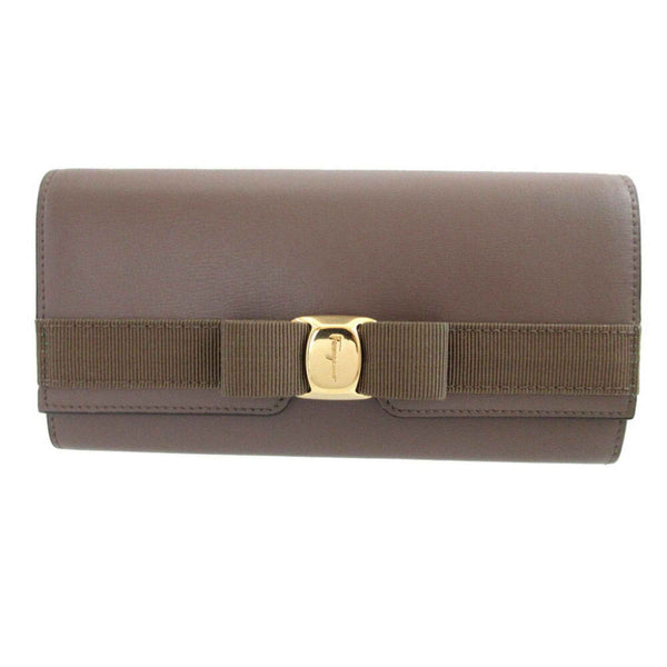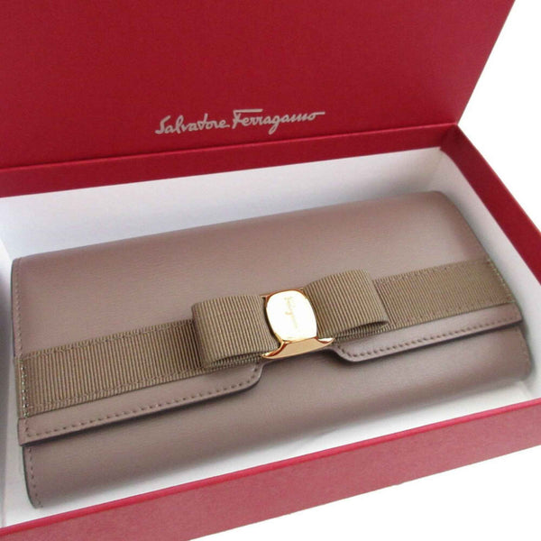 Like new Salvatore Ferragamo Vara Ribbon leather grey bi-fold long wallet 0502Salvatore