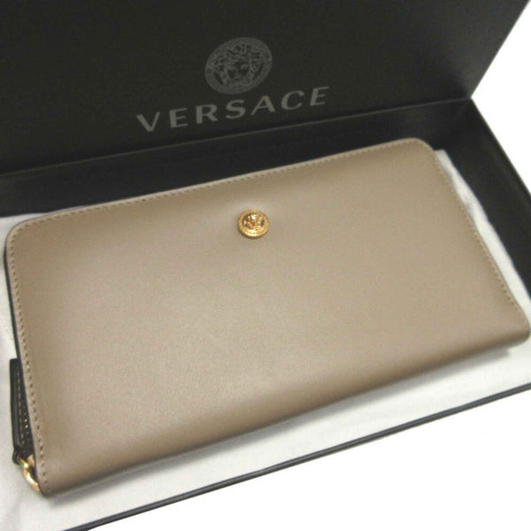 Like new Versace Medusa leather beige round long wallet 0316VERSACE