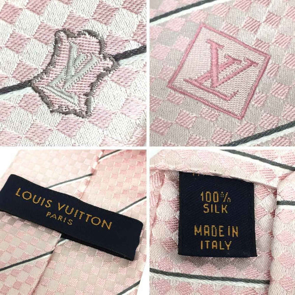 LOUIS VUITTON Cravate Ec Tie, 8cm, M78760, Rose Pale Pink, Damier Finish, 100% Silk, Men\'s, aq11838
