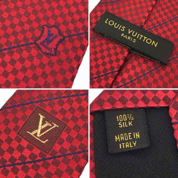 LOUIS VUITTON Cravate Ec tie, red, Damier pattern, 100% silk, men\'s