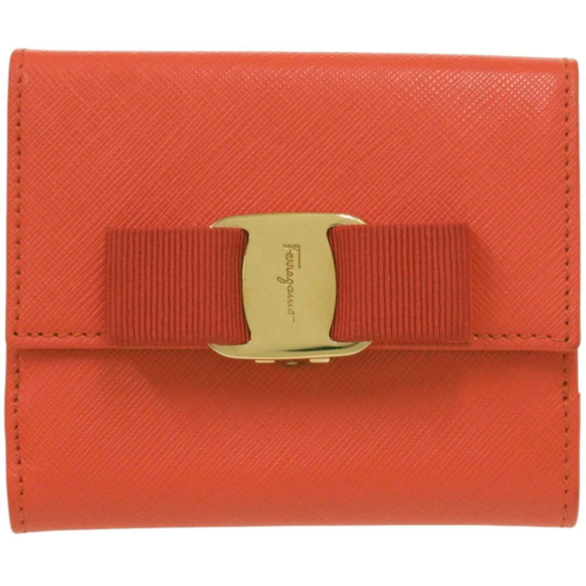 Salvatore Ferragamo Vara Ribbon 22A926 Leather Orange Bifold Wallet 1453Salvatore