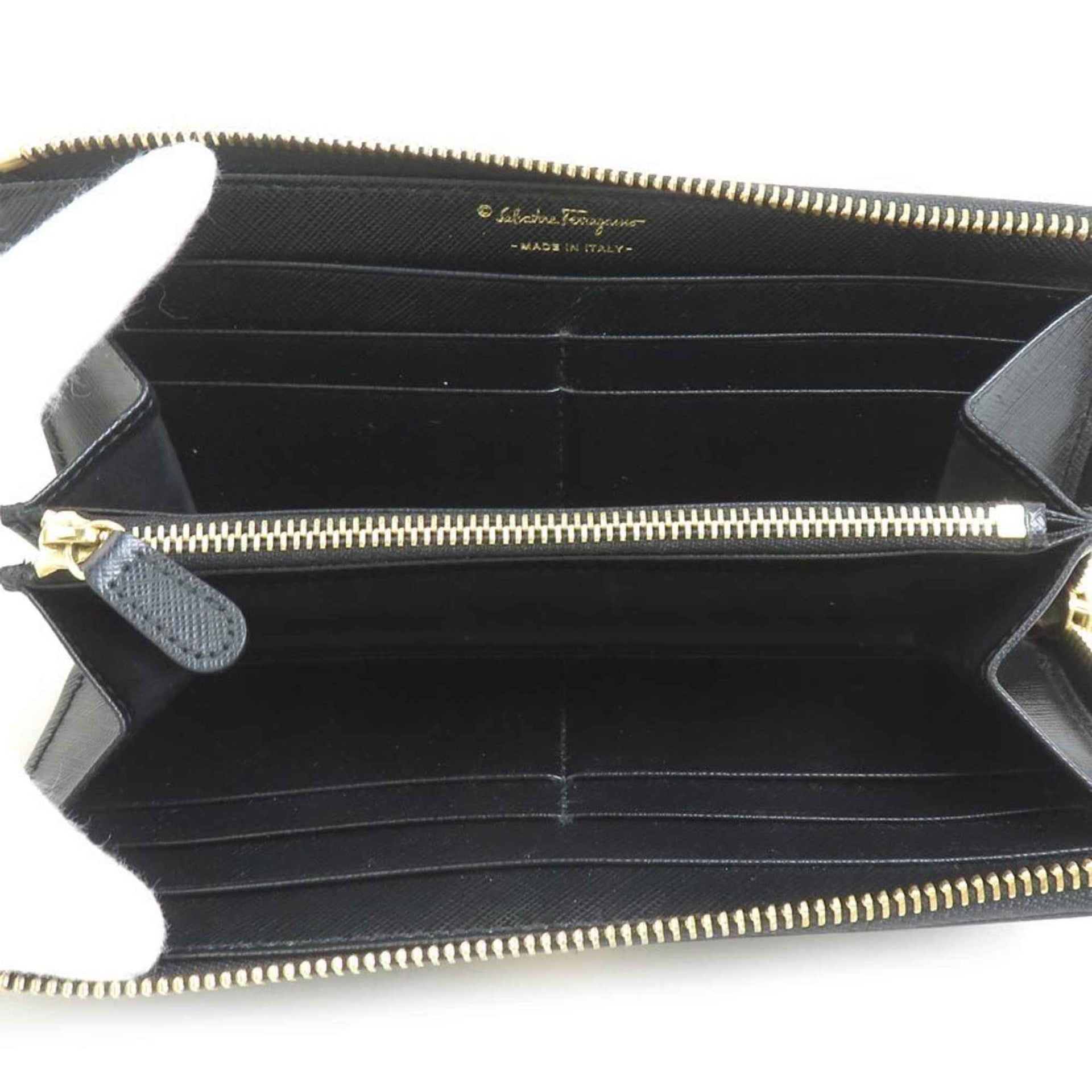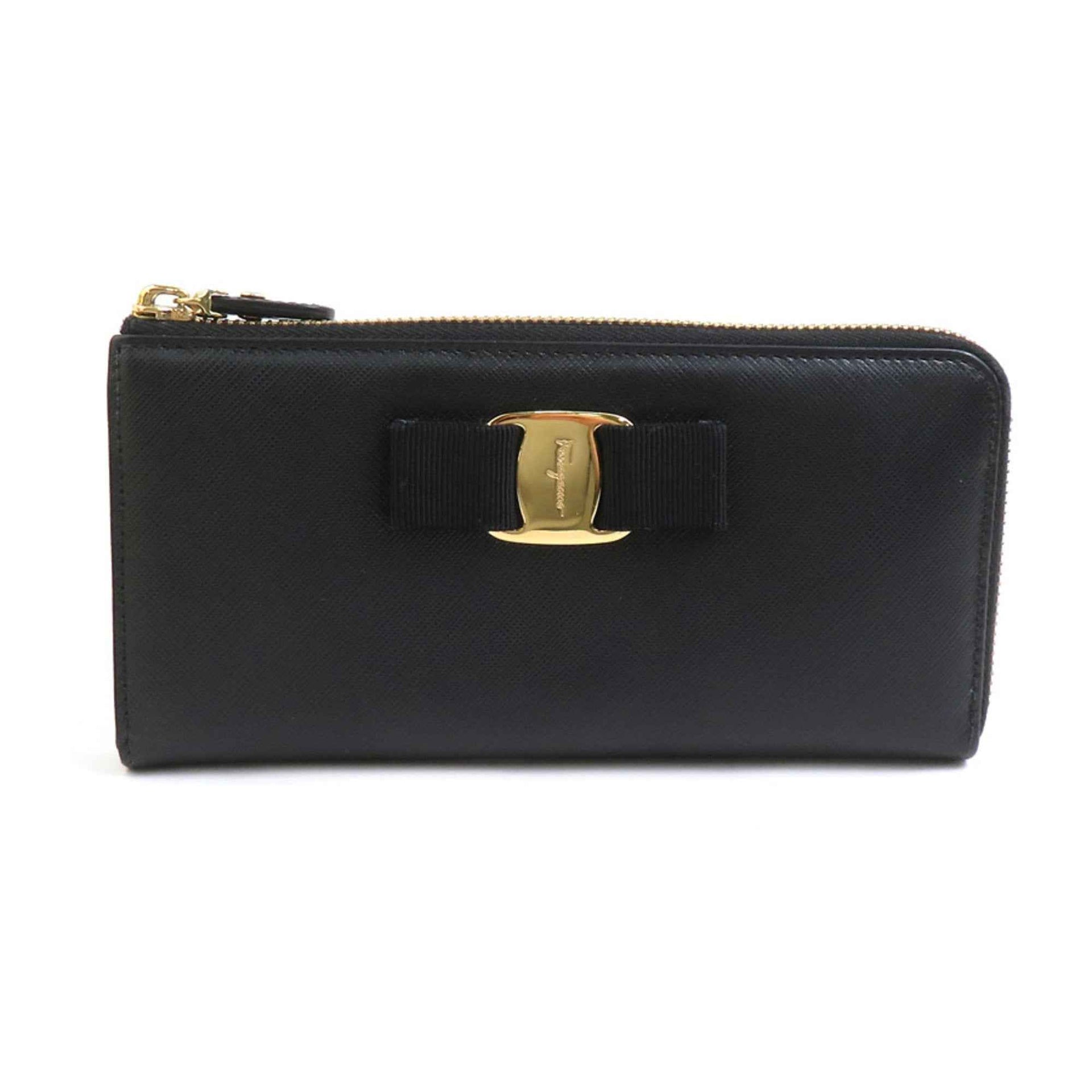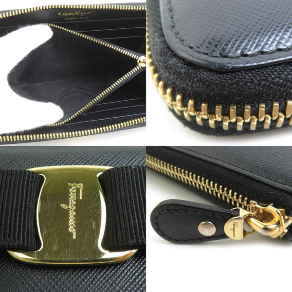 Salvatore Ferragamo Vara Ribbon Leather Round Long Wallet in Black, Women\'s, H31413a