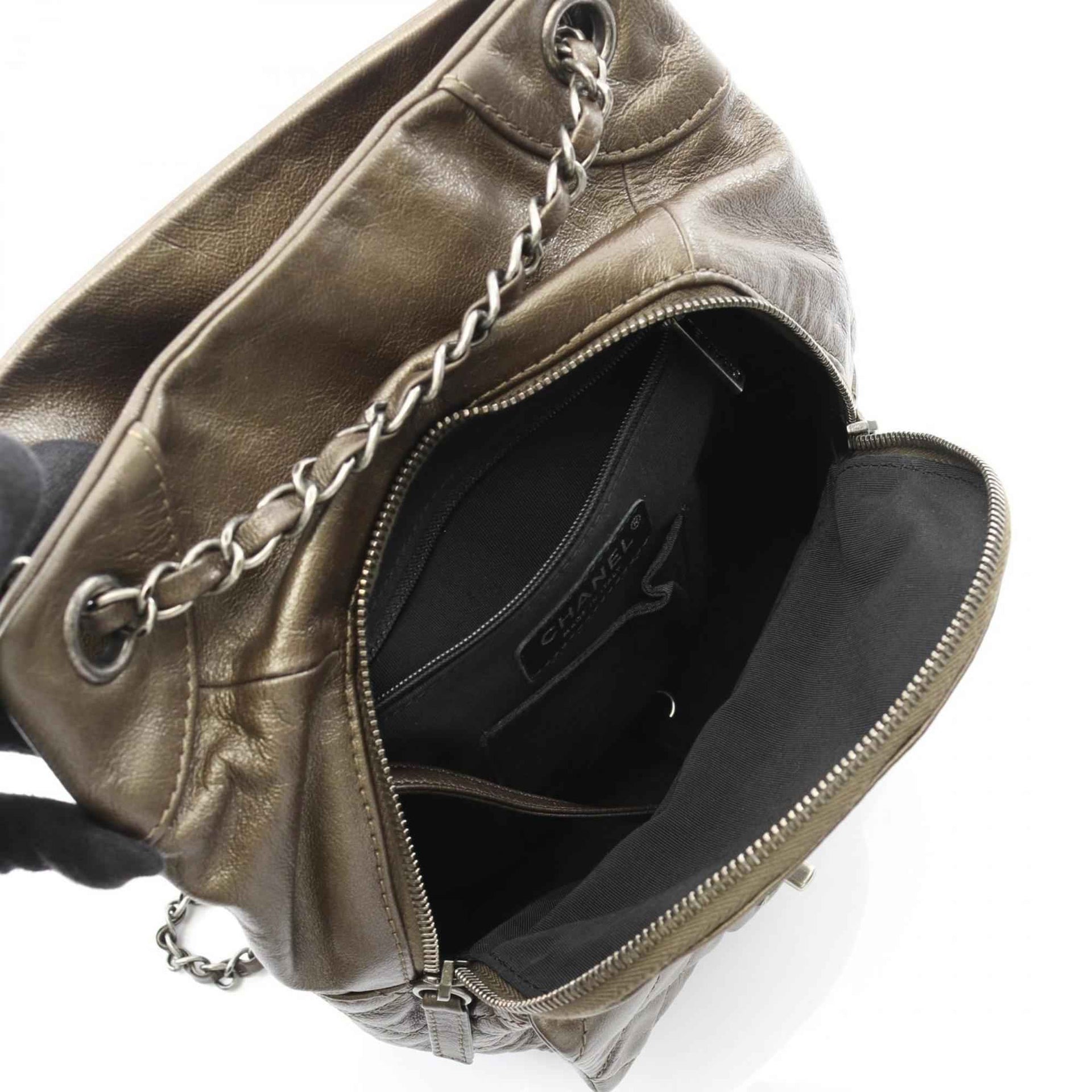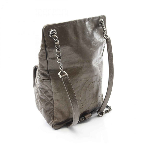 CHANEL Matelasse Backpack, Leather, Women\'s, Khaki