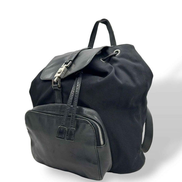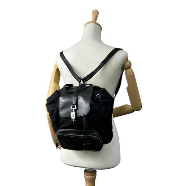 GUCCI Backpack, Black, Nylon, Leather, Genuine Flap, Locking Hardware, Silver Logo Plate, Men\'s and Women\'s