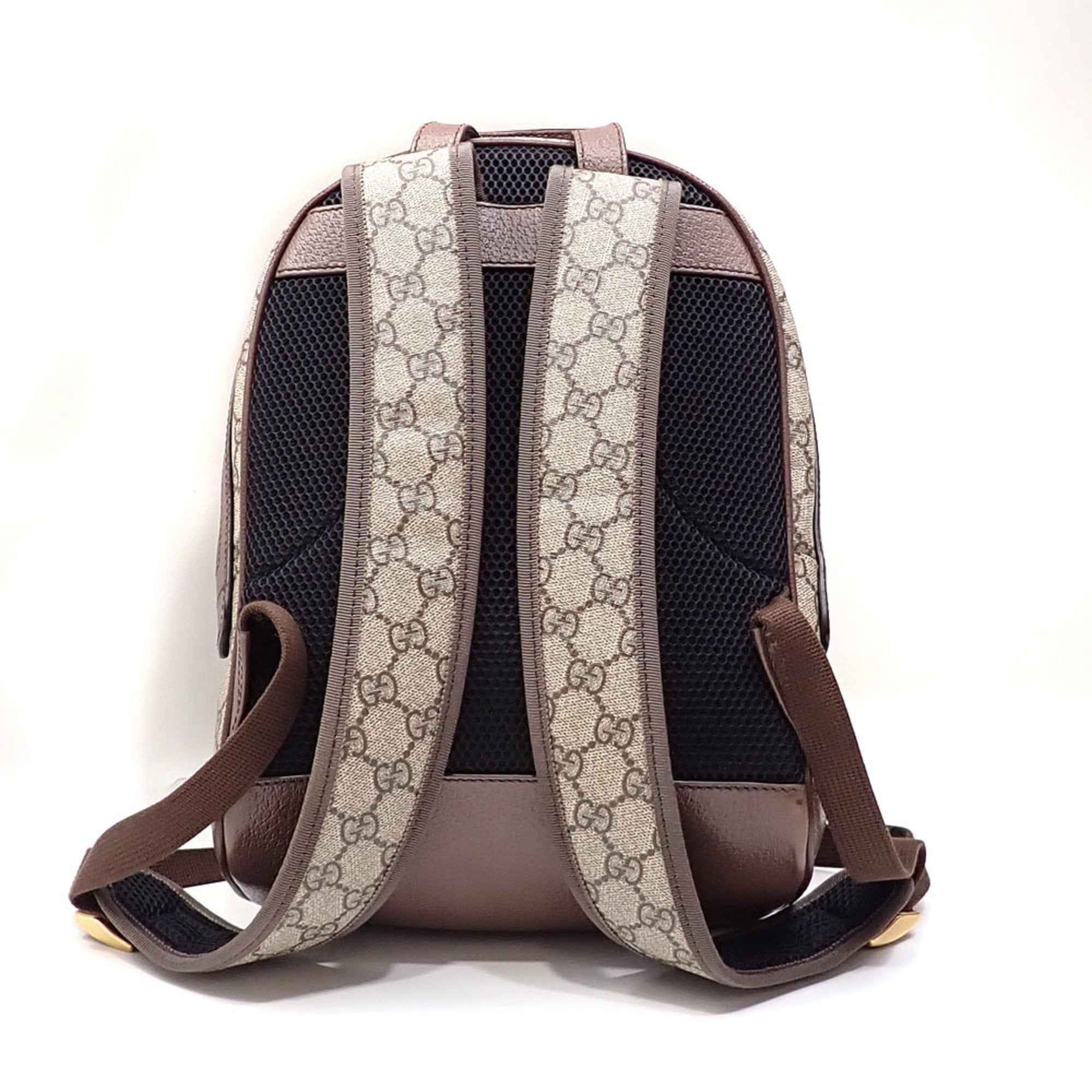 Gucci Ophidia Small Backpack, Men\'s, Beige, Brown, PVC, Leather, 547965, Daypack, GG Supreme