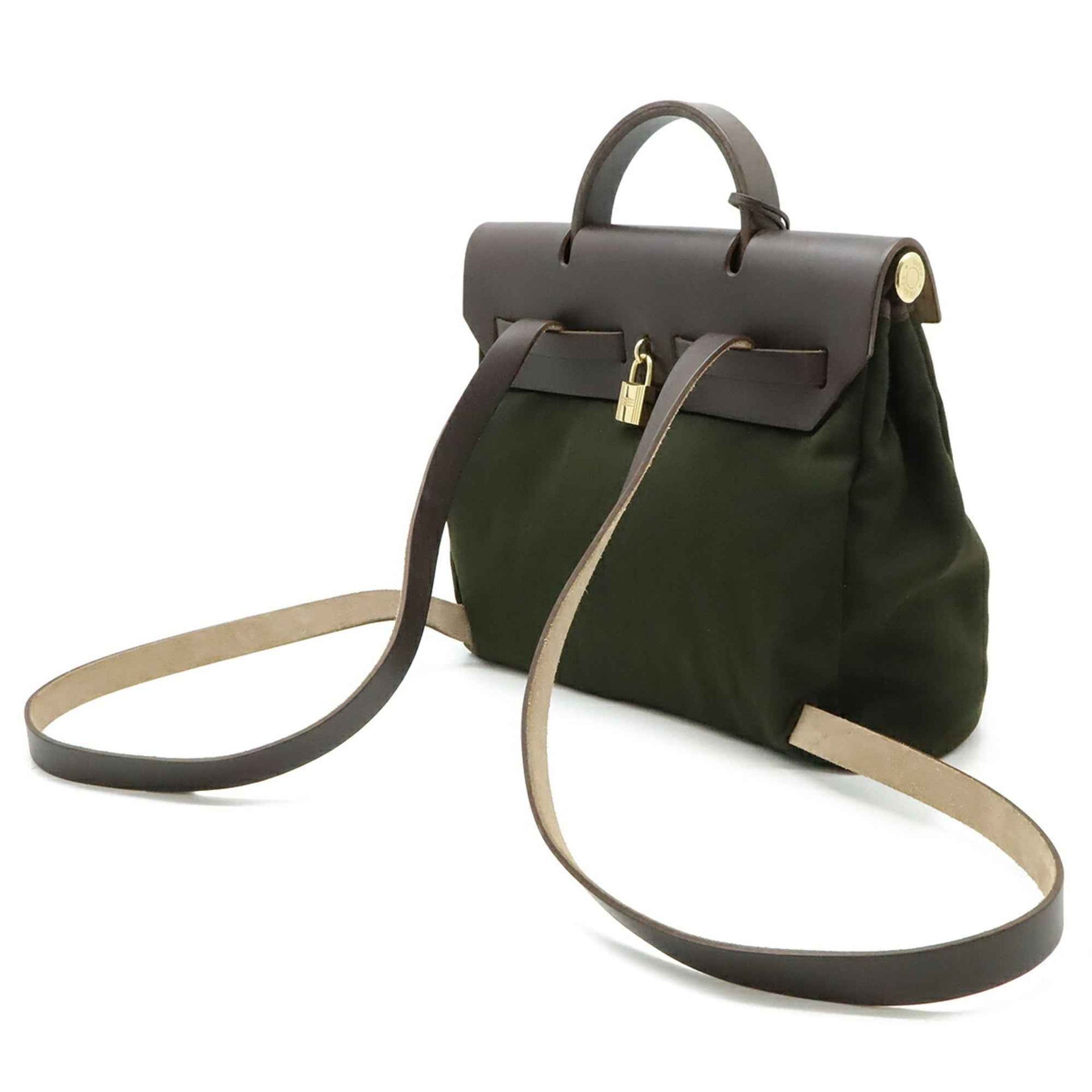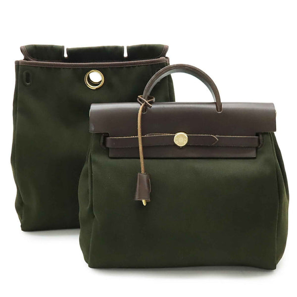 HERMES Hermès Airbag Ad PM Backpack/Handbag Fabric/Leather Brown/Khaki/Green □G Stamp