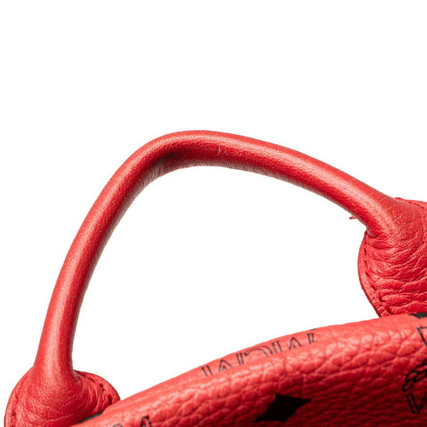 MCM Visetos Logogram Studded Backpack in Pink and Red Leather for Women