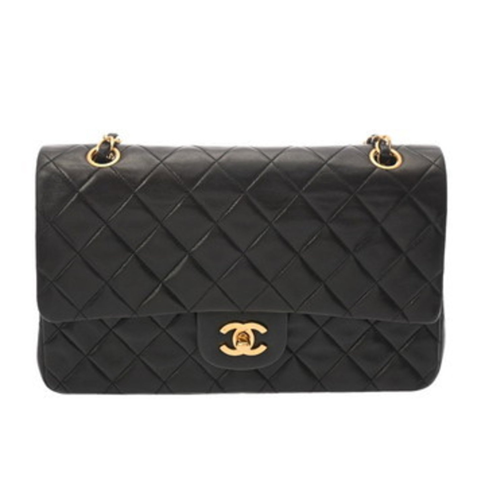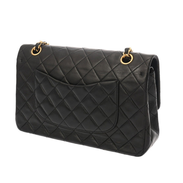 CHANEL Matelasse Double Flap 25cm Chain Shoulder Bag, Black, A01112, Women\'s Lambskin AB