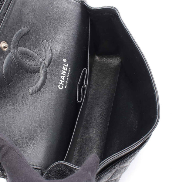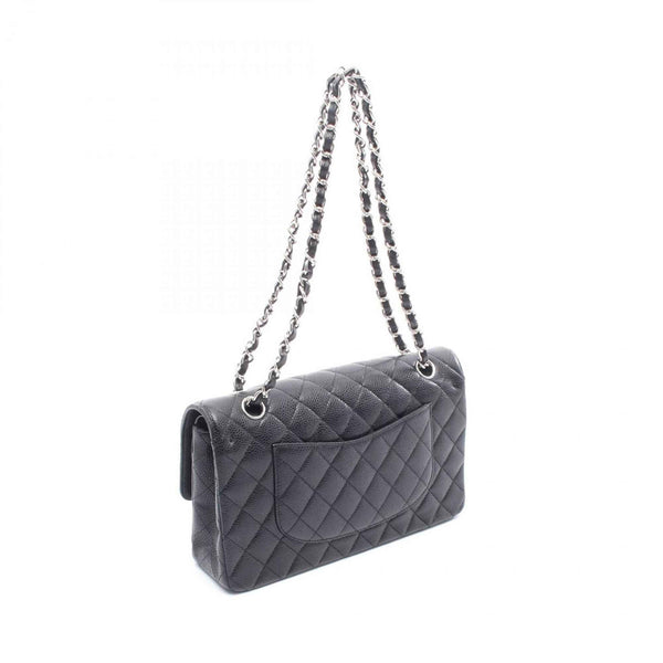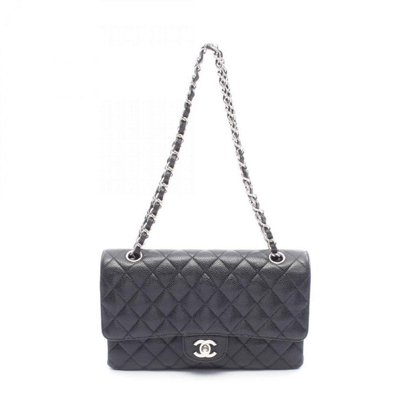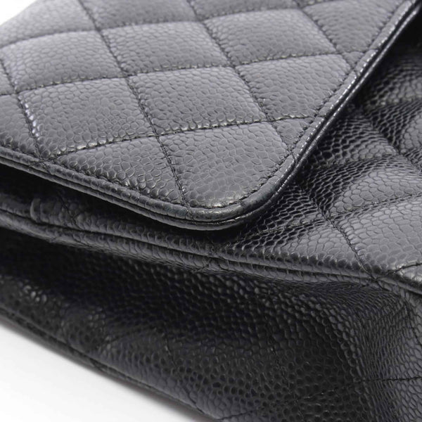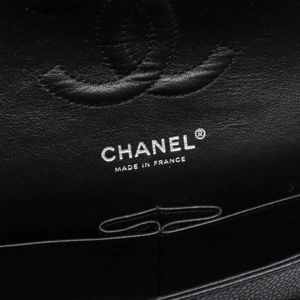 CHANEL Matelasse Double Flap Shoulder Bag in Calfskin Leather, Black