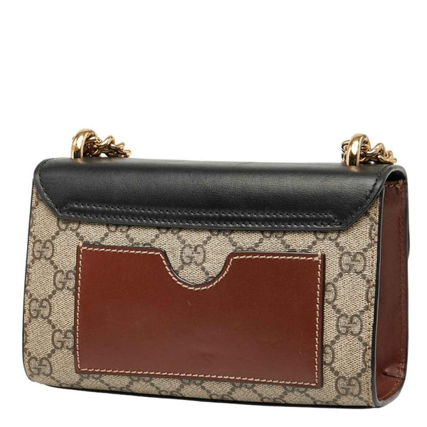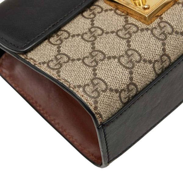 Gucci GG Supreme Padlock Small Chain Shoulder Bag 409487 Beige Black Leather Women\'s GUCCI