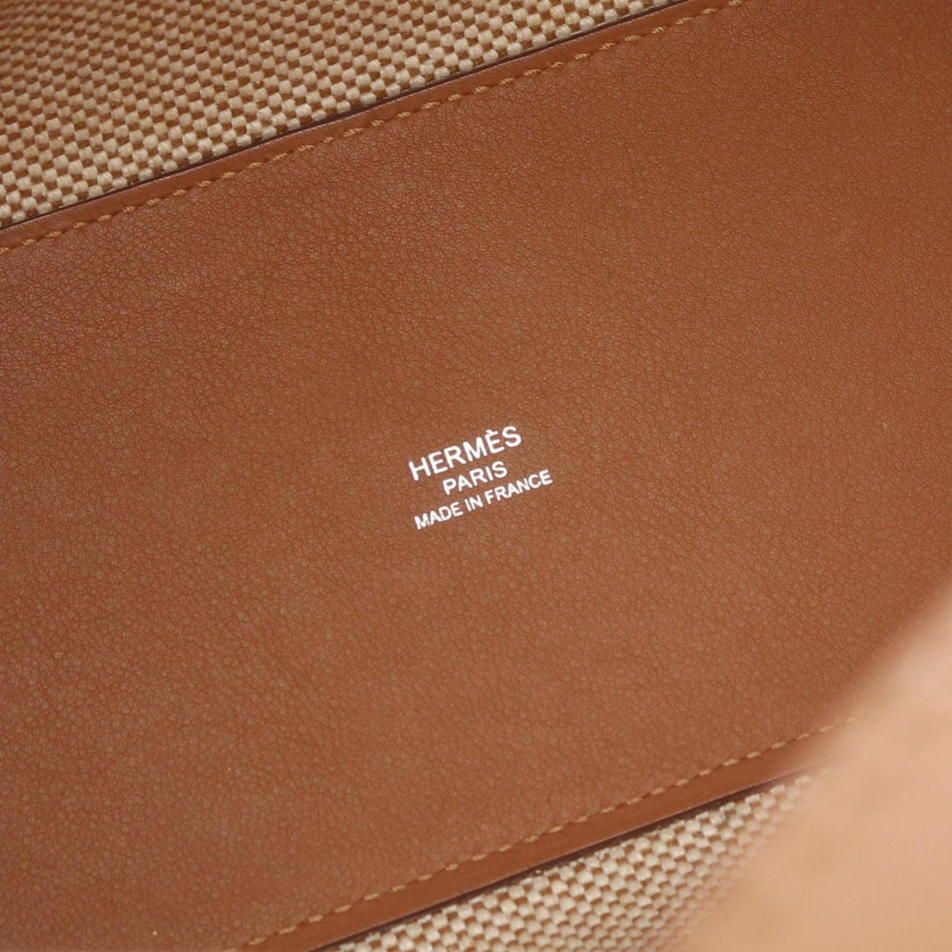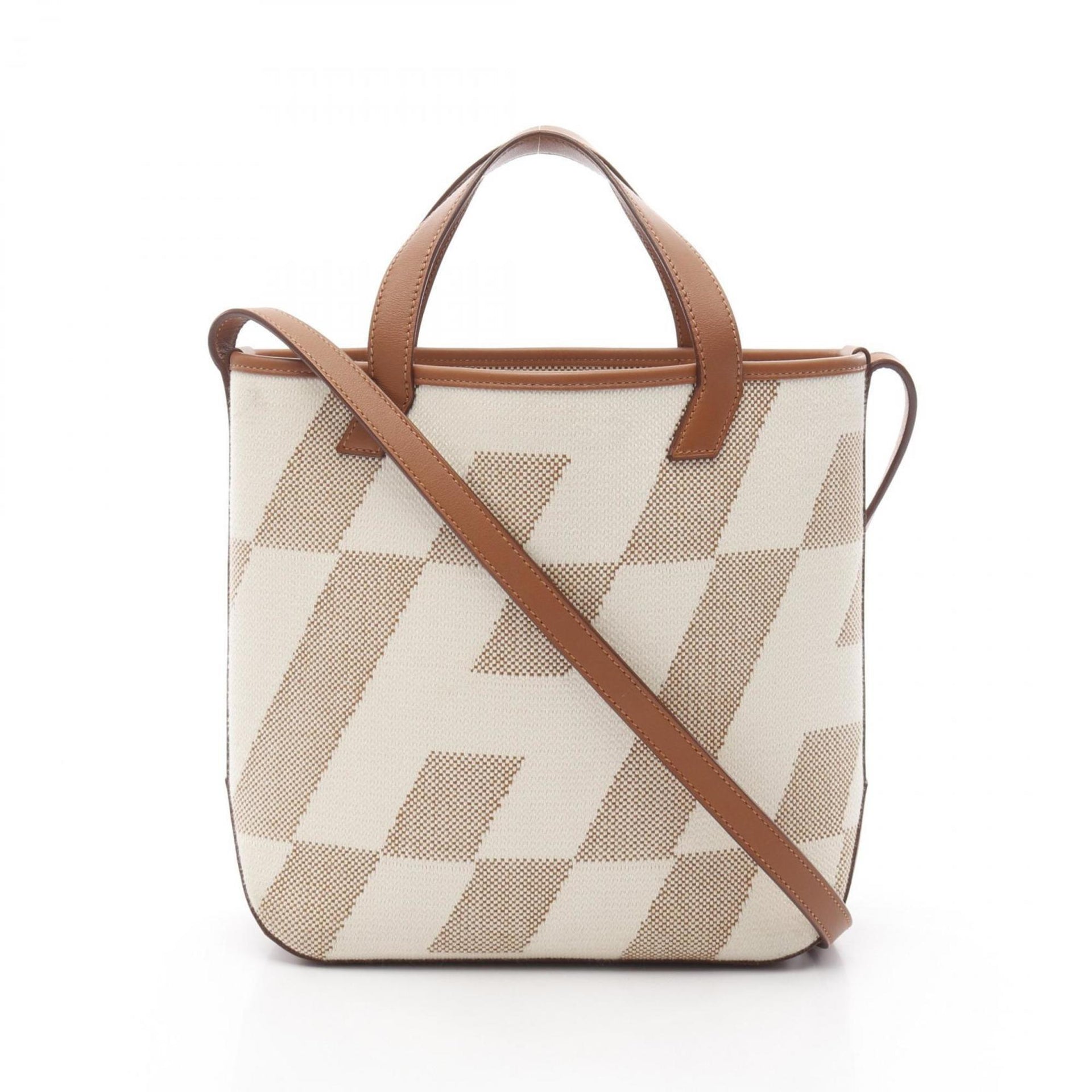 Hermes Hermès H Ambié PM Tote Bag, Leather, Swift Toile H, Women\'s, White, Brown