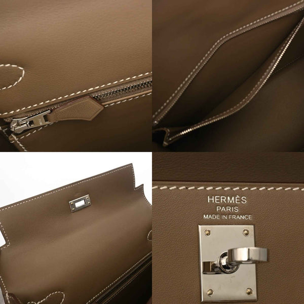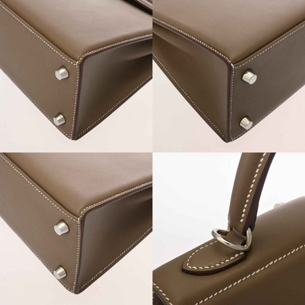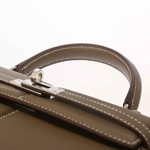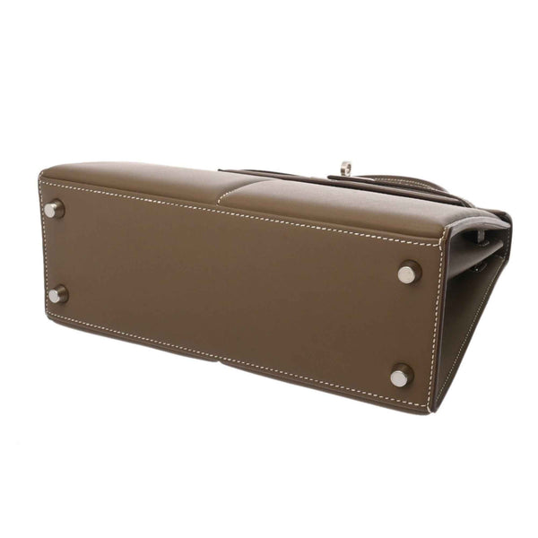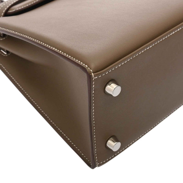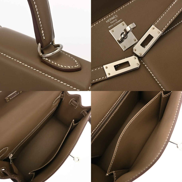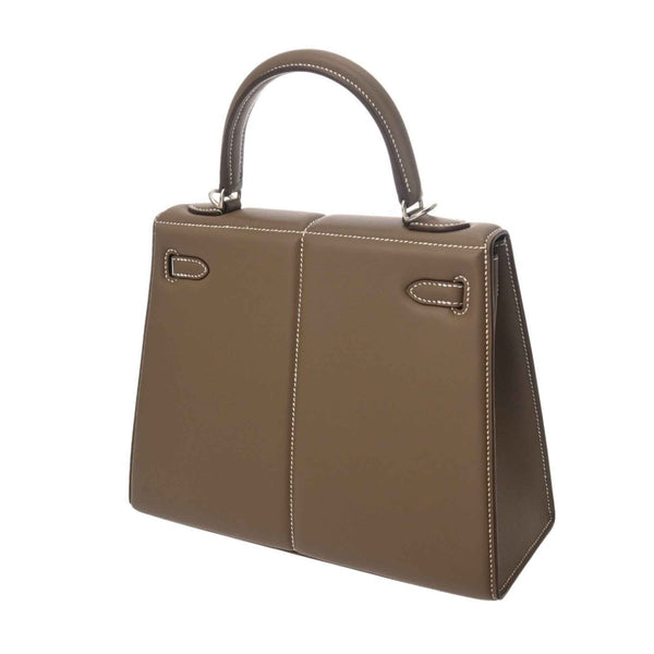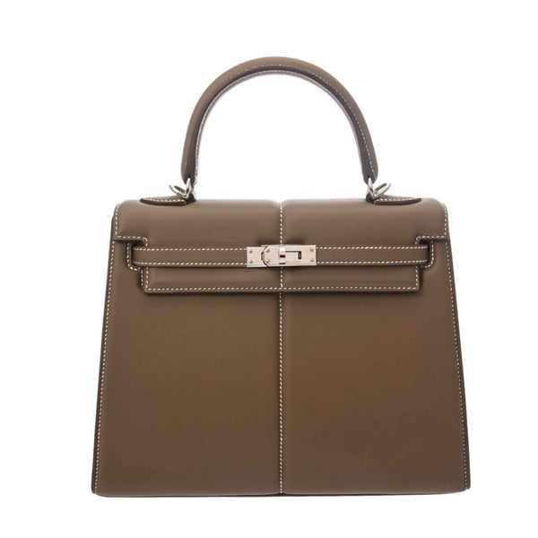HERMES Kelly Padded Bag, Size 25, Externally Stitched, Etoupe Leather, U Stamp (circa 2022), Women\'s Swift 2-Way Bag