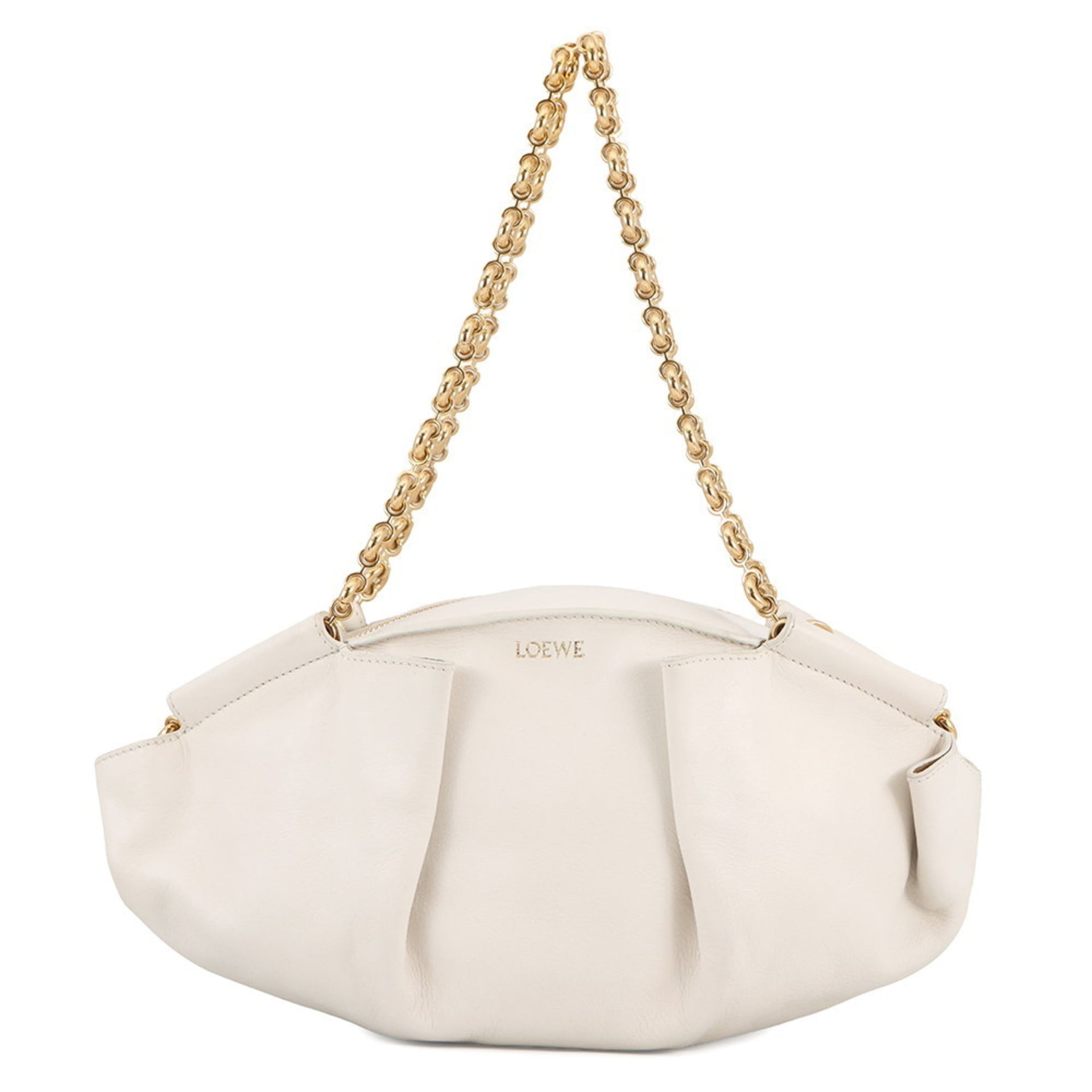 Loewe Paseo Small Leather Chain Shoulder Bag in White