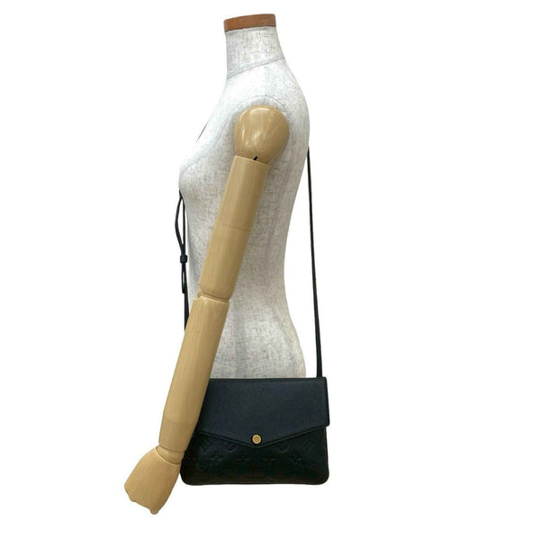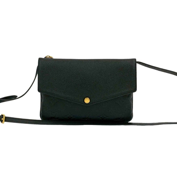 LOUIS VUITTON Twice Monogram Empreinte Leather Shoulder Bag Pochette Noir 27931