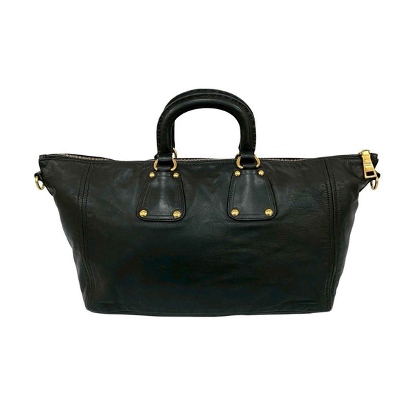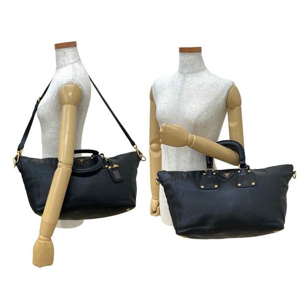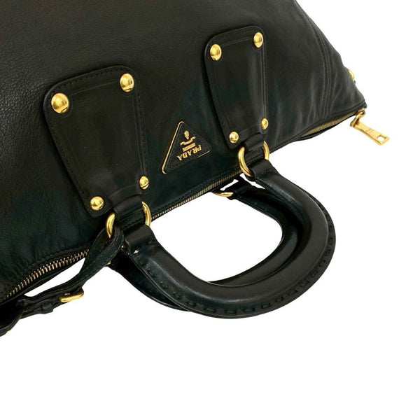 PRADA Prada Triangle Logo Hardware Leather 2-Way Handbag, Mini Boston Bag, Tote Shoulder Black 71440